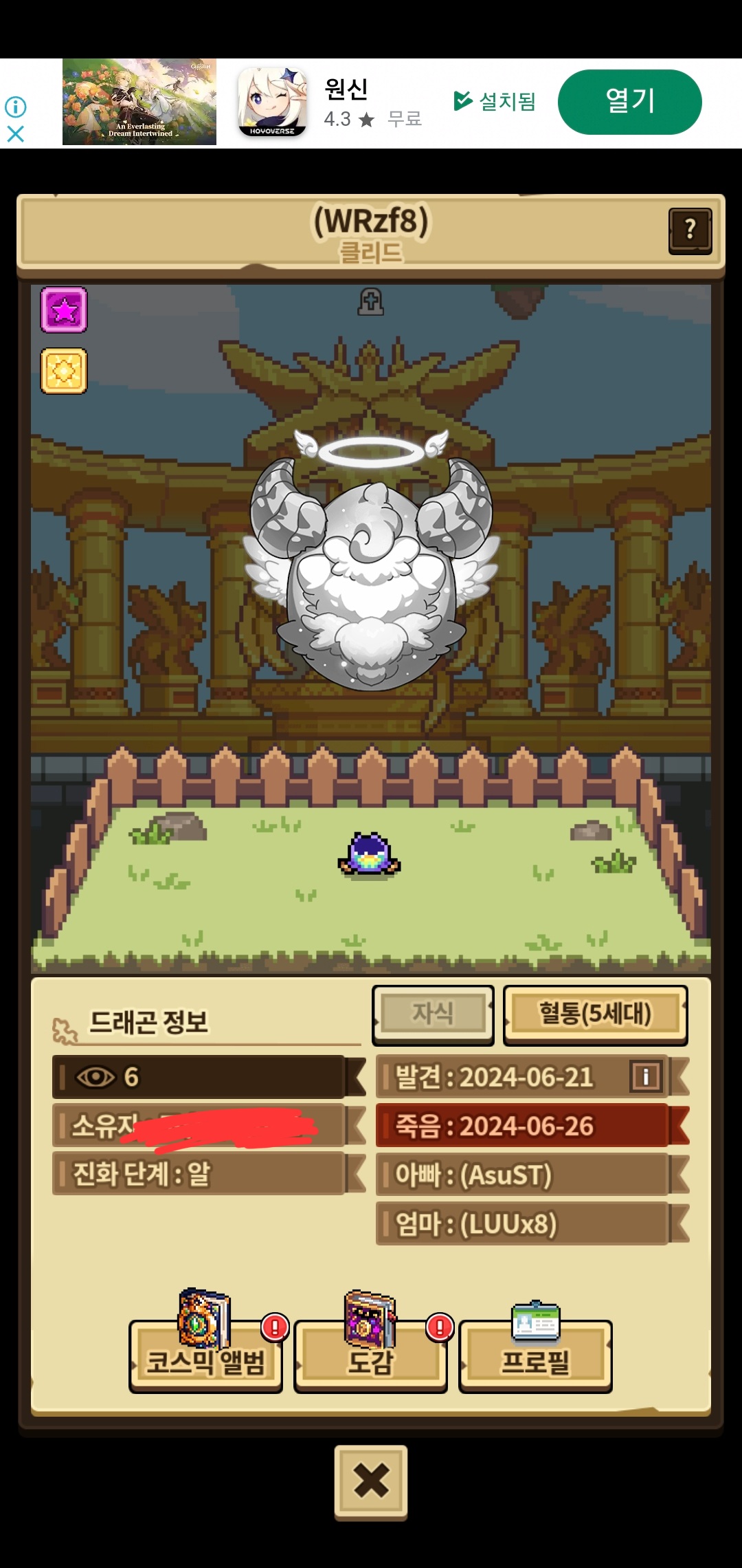 선물로 드린 순혈 순5 클리드가 죽었네요….