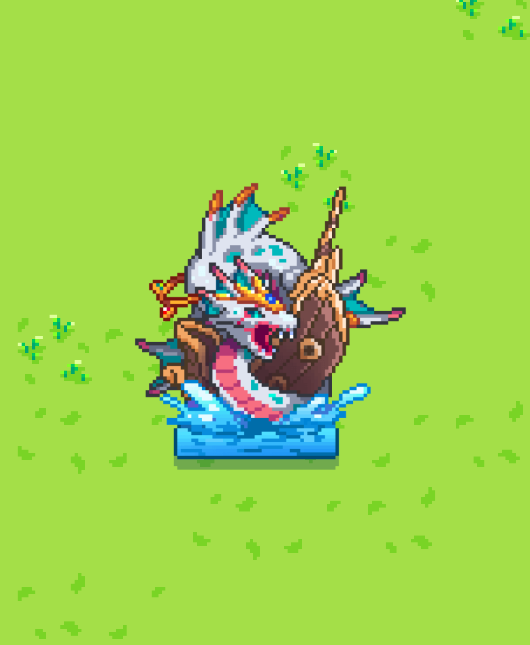 락샤사 성체를 피트너로 하면 뜨네요 요구사항은 물속성 드래곤이라 쉽게 깰 수 있고 보상은 빌리지 장식이네요 솔루카 석상처럼 밤에는 빛도 나네요.