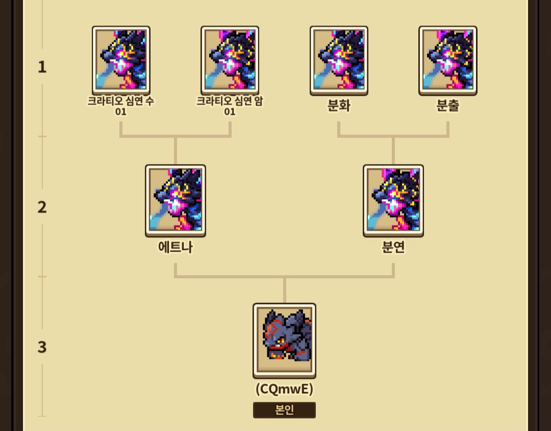 1세대 심연 2세대 심연 3세대 일반외형 크라티오 남아 동일족보로 성별교환 두분 구해요.