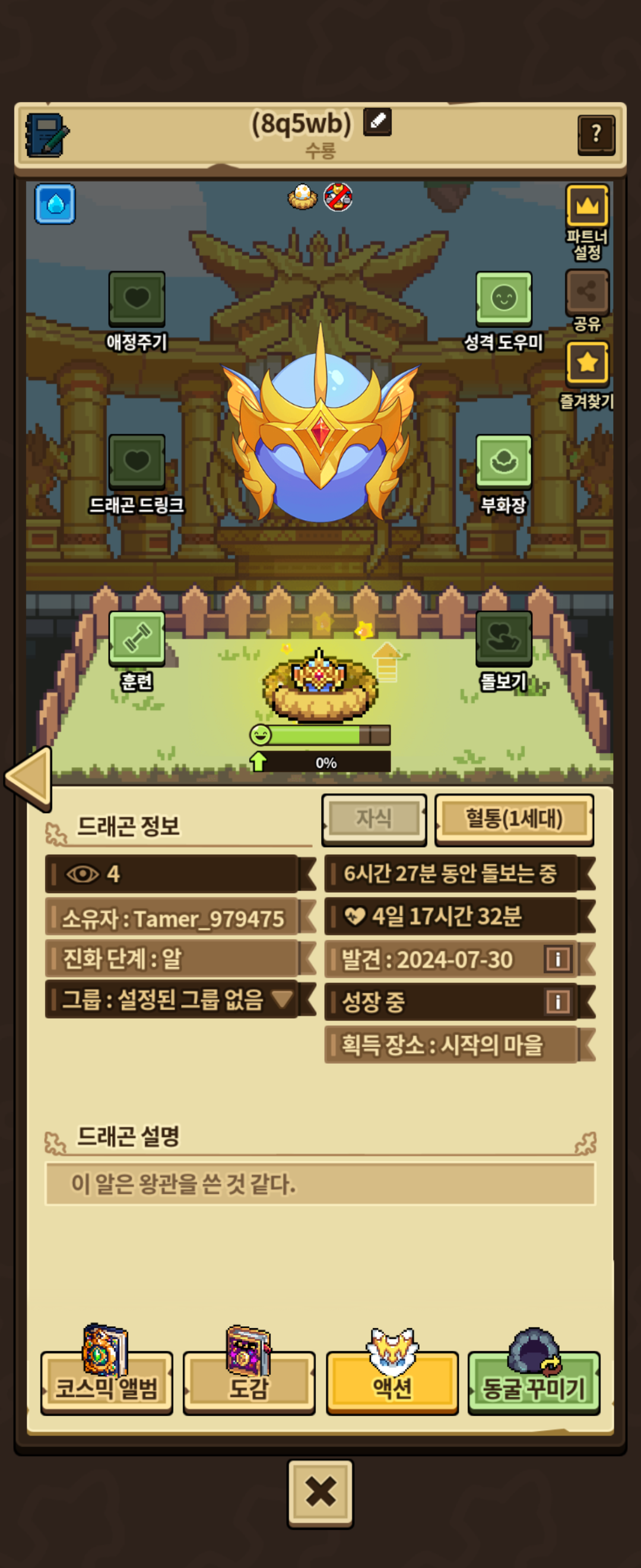 첫 선택 용인데 6시간째 성장이 0 이네요 다른 얘들은 안그러는데 ㅠㅠ 성장고속상태라고 드링크도 못먹이고.. 이거 왜그러나용??