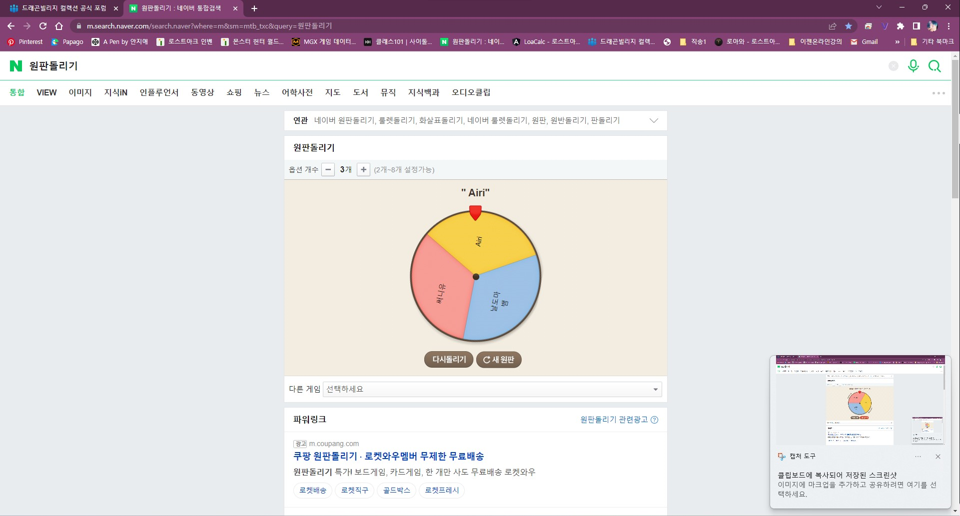3회차 돌려본 결과 Airi_Kanna님 께서 당첨 되셨습니다!