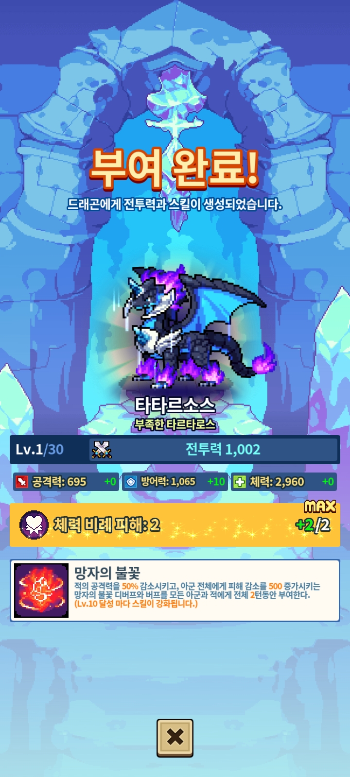 일단 효과는 아군 피해감소 500에 적 데미지 50% 감소 2턴