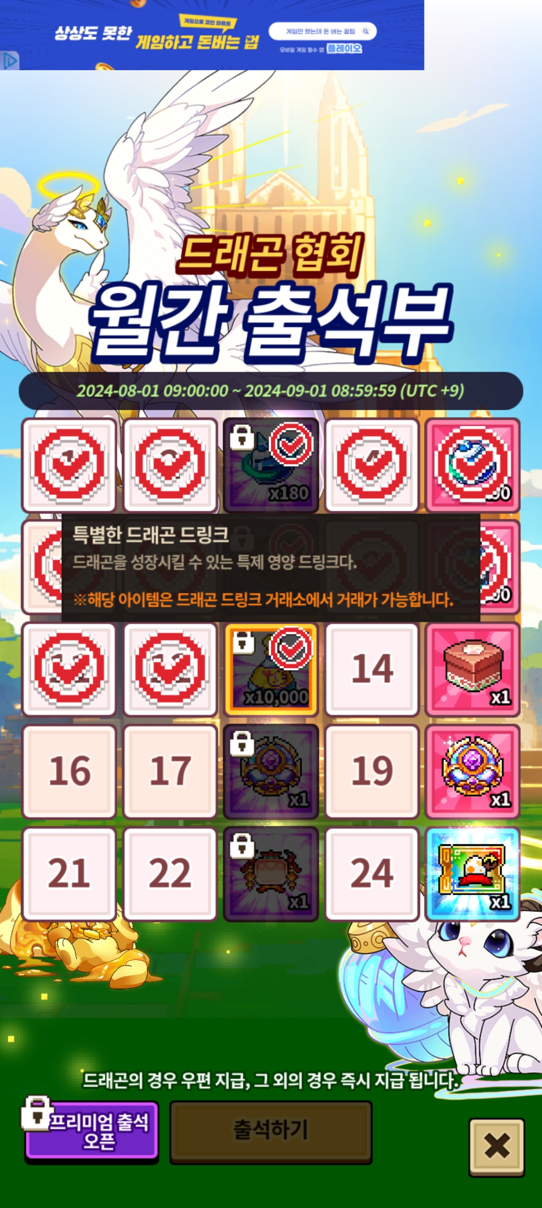 출석보상으로 특별 드링크를 받는데 우편에도 없고 드링크 액수도 변함이 없네요.