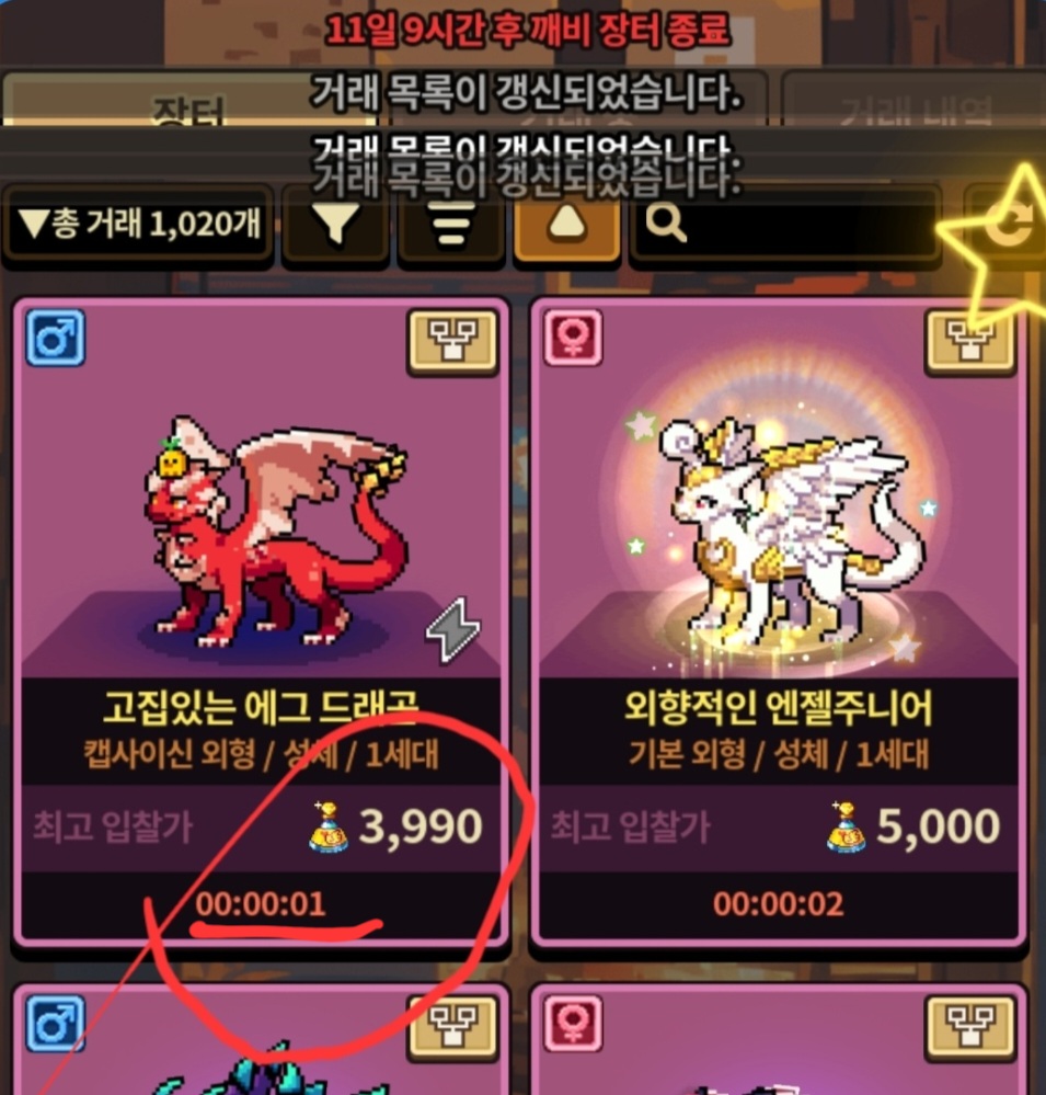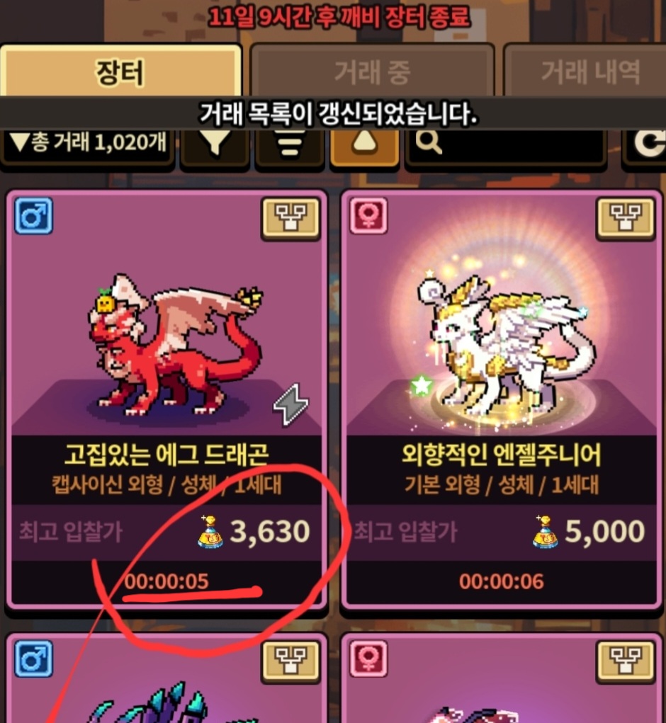 입찰 종료 1초 전에 최종 입찰가가 바뀌어 다른 사람에게 넘어갈 수도 있으니 다들 조심하고 원하는 용을 얻을 수 있기를