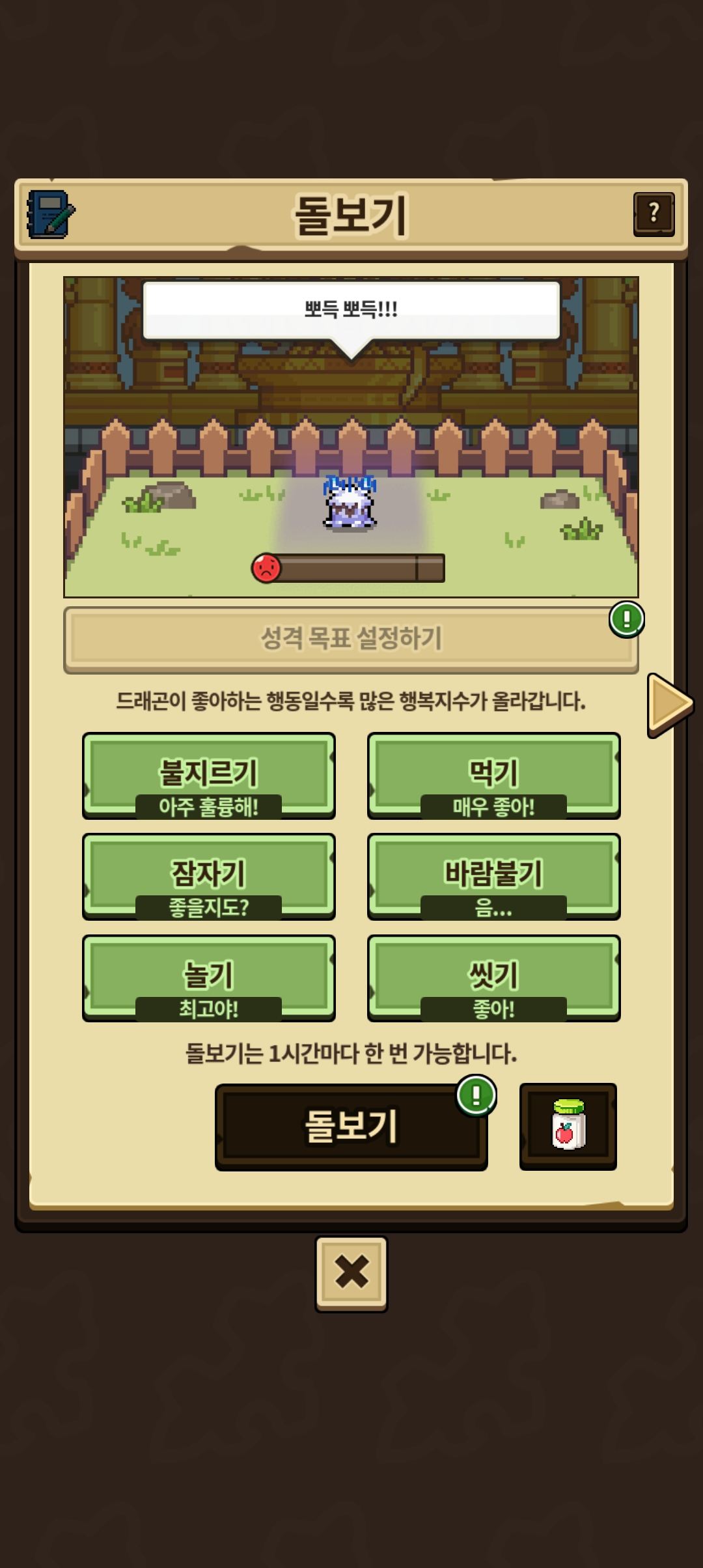 남아는 성격작 사나운으로 맞추면 이쁠것 같아서 돌보기는 전부 개방해뒀네요.