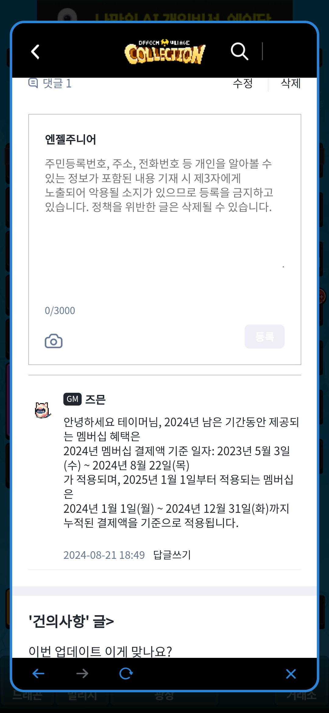 자유게시판 멥버쉽 엔젤주니어 2024-08-21 02:52 176 1 공유 공유 URL 복사 페이스북 왓츠앱 카카오톡 라인 레딧 닫기 공유 1 0 댓글 1 삭제 이미지첨부 0/3000 등록