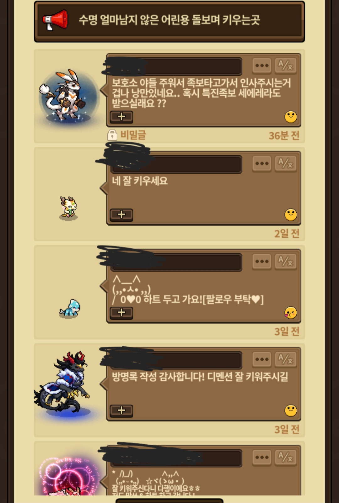 도감작을 하자니 성격상 무쟈게 귀찮아서 시작한 보호소 컨텐츠..