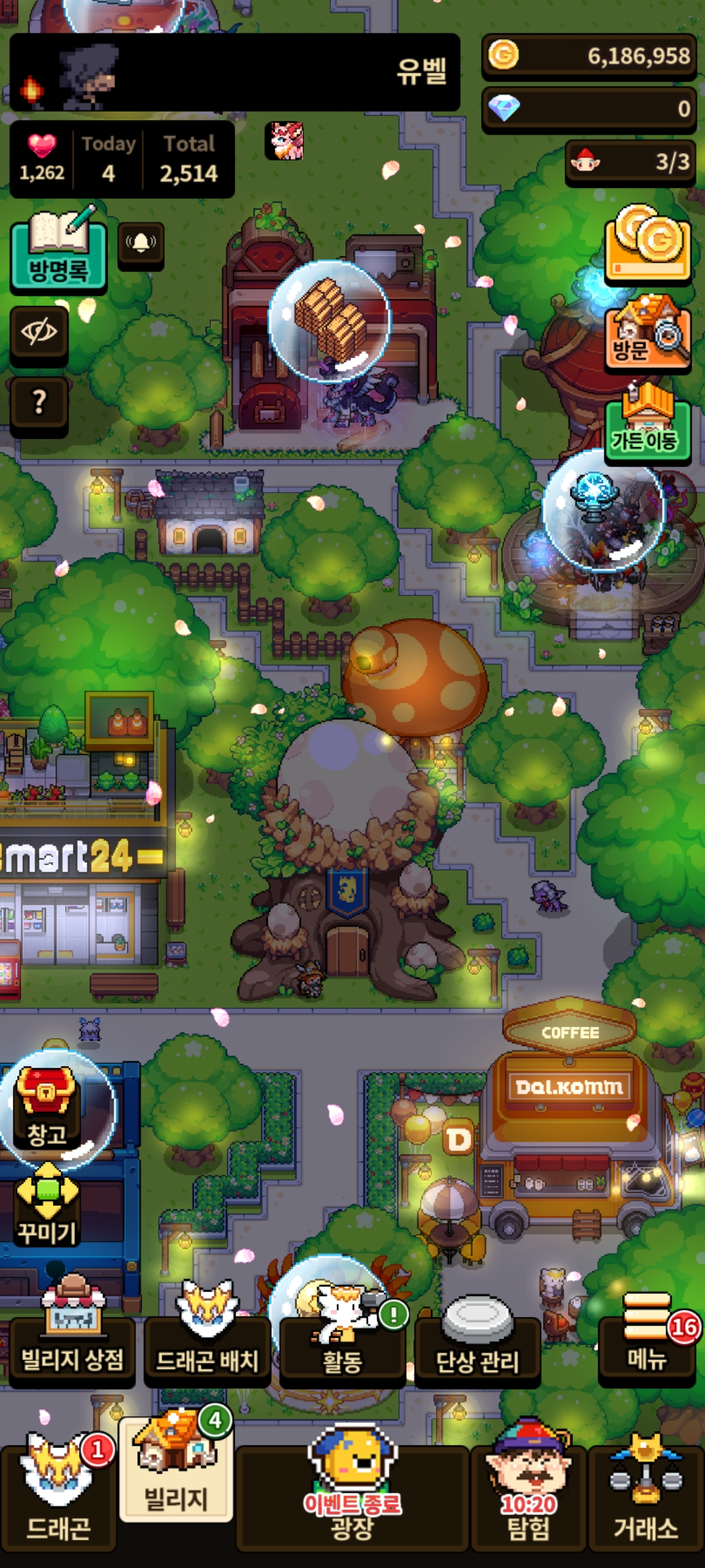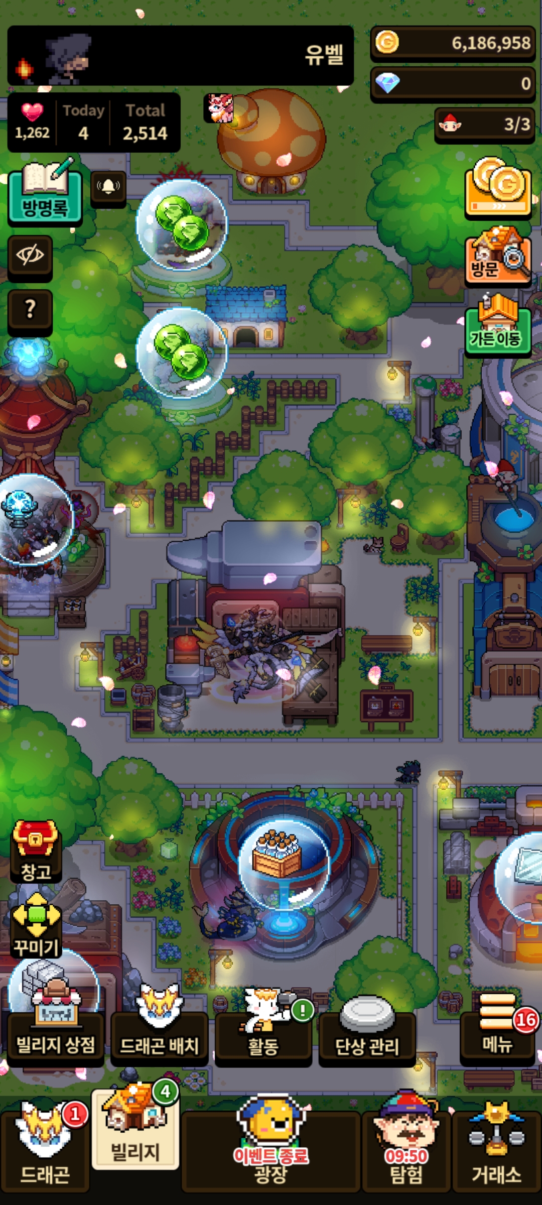 일단 최종 목표는 드빌컬 섭종 전까지 빌리지와 가든 전부 다 꾸미기와 끝까지 수명 없는 어린 용들을 데려가서 기르는 짓이겠네요