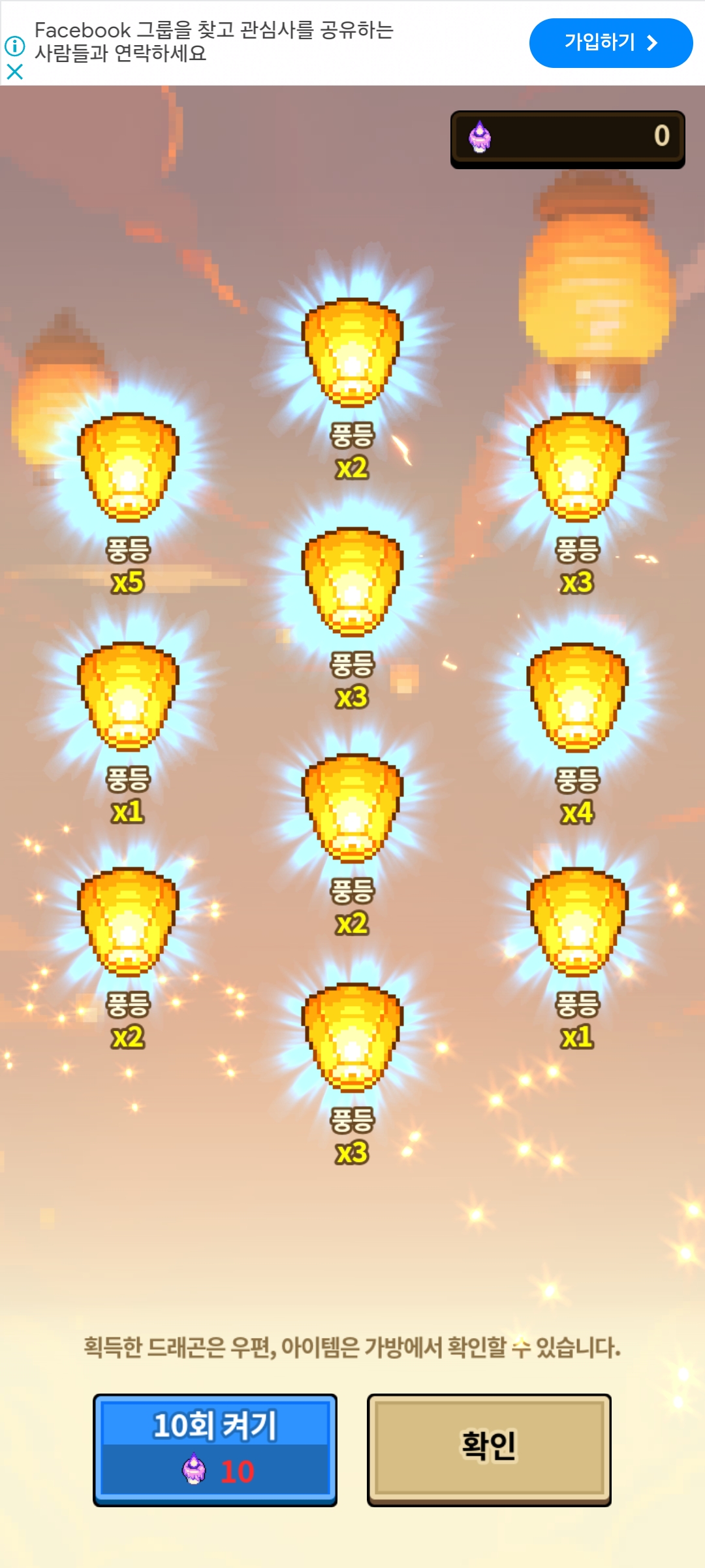 풍등이벤 첫날부터 꼬박꼬박 했는데 풍등만 저렇게 나오고(저것도 심지어 평소보다 많이나온겁니다ㅋ) 50,100은 한번도 안나와주네요ㅎ알은 당연히 안나왔고요..