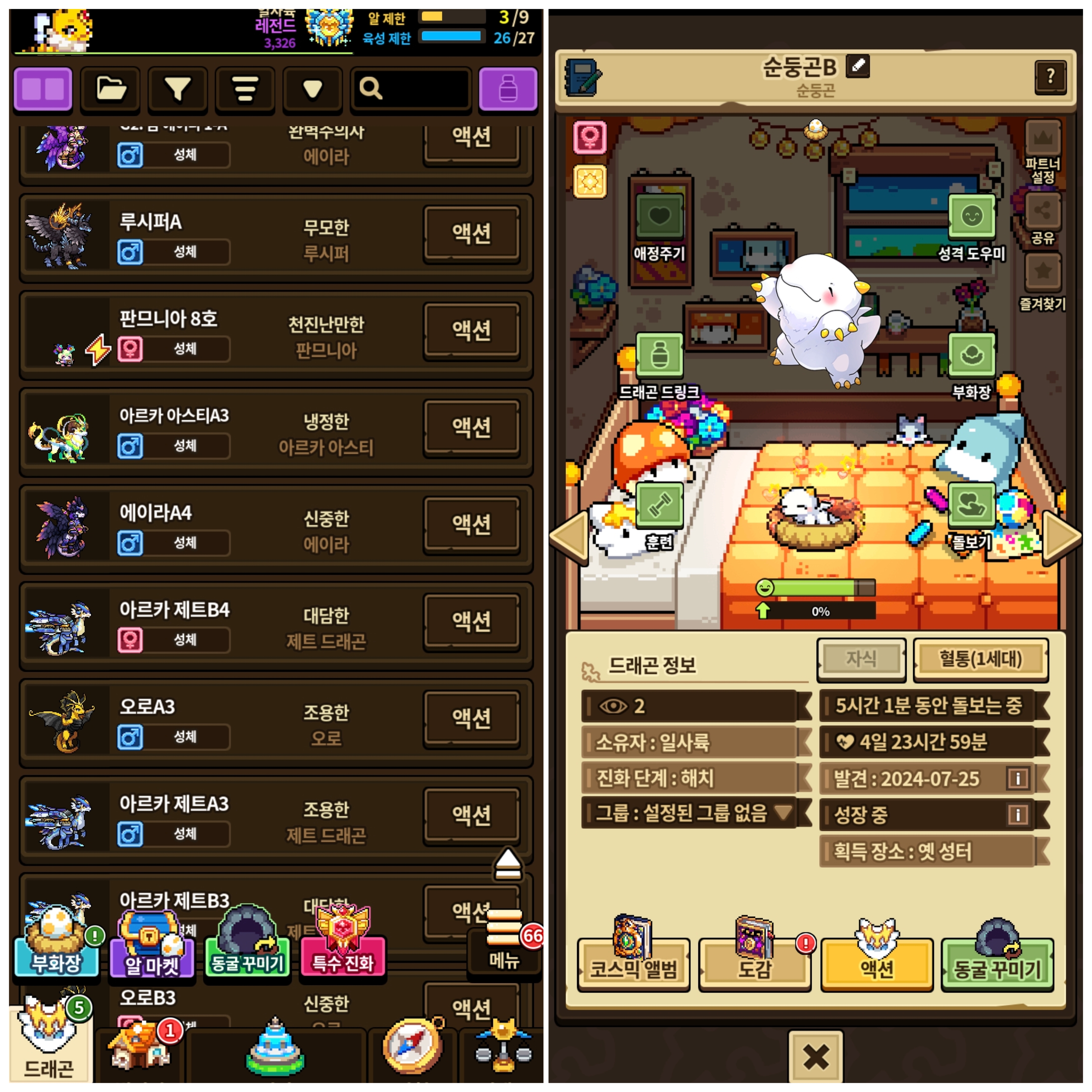 근데,,, 이벤트 때문에 계속해서 똑같은 드래곤을 잔뜩 데려오다보니 순서도 뒤죽박죽이 되어버리고 일일히 배경 지정을 해 줄 수도 없게 되어버려서 결국은