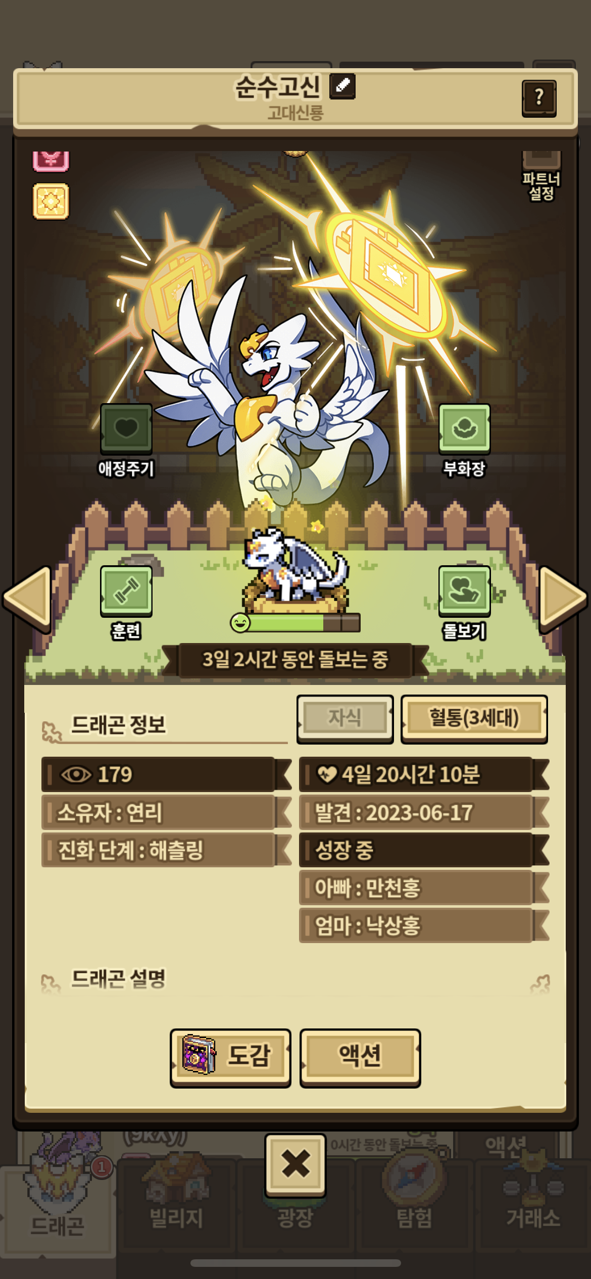 순수한 고신 3세대 해츨링 한마리와 거래했습니다 (헤네스로 확인했음)