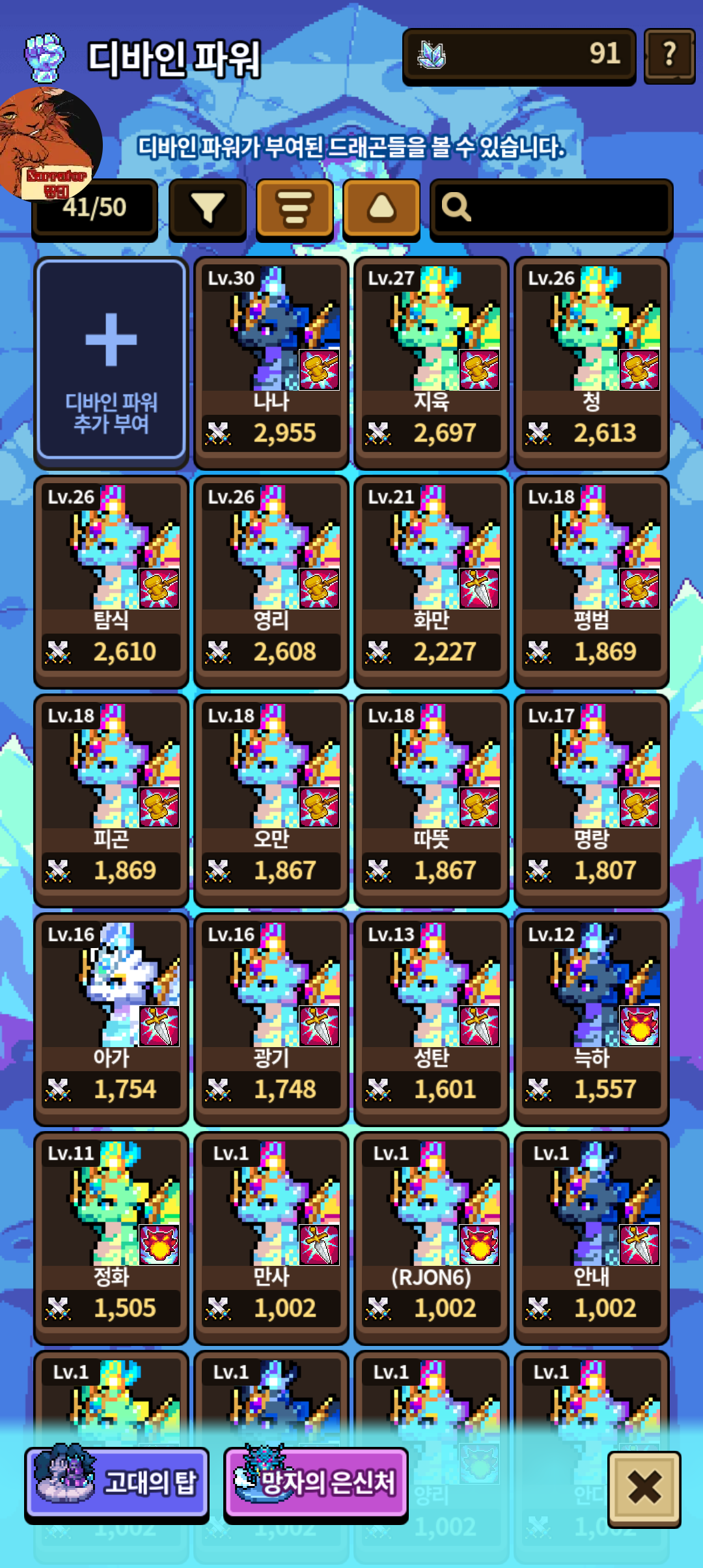 메인인 애들은 5마리 30렙 찍어줄 예정이고 나머지는 대략 26이상은 찍어줘보려구욬ㅎㅋㅎㅋ