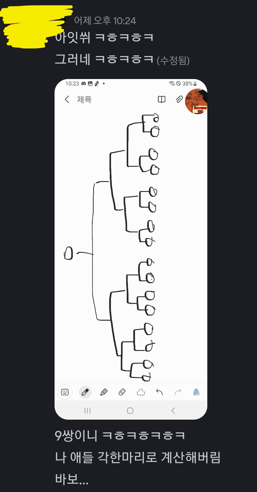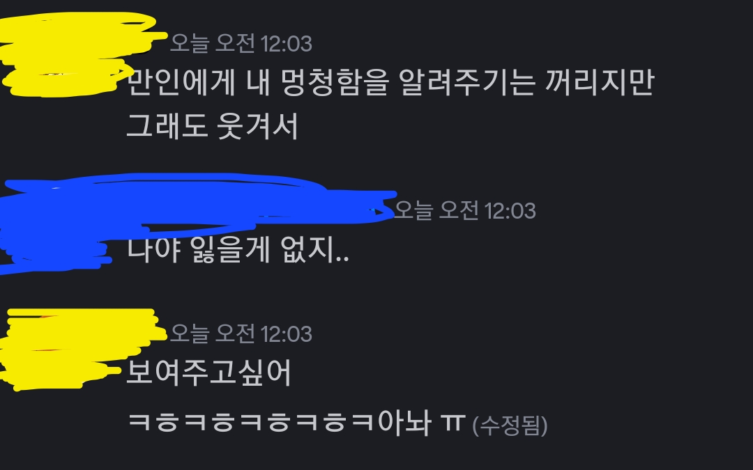 노랭쓰 자신의 멍청함을 인지하지만 너무 웃겨서 게시글에 올리고픈 충동이 듦.