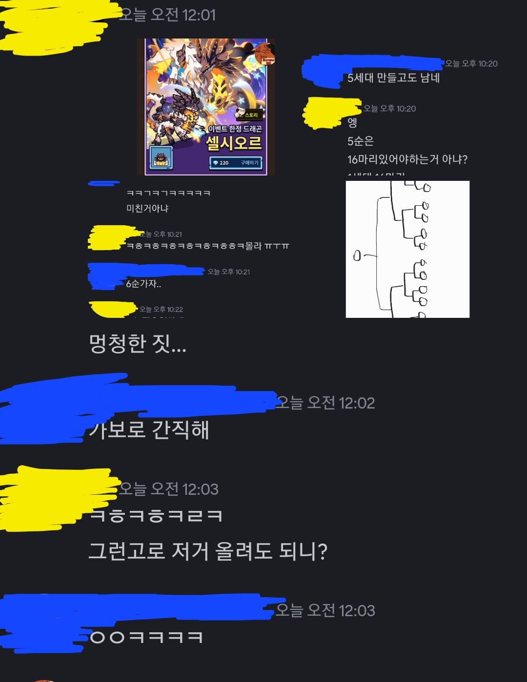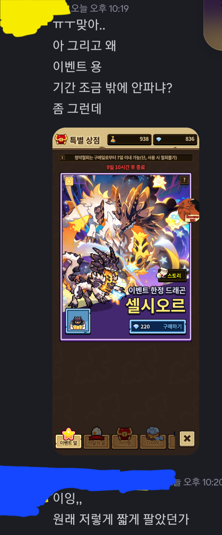 이벤트드래곤 판매기한을 보고 불만에 찬 노랭이.