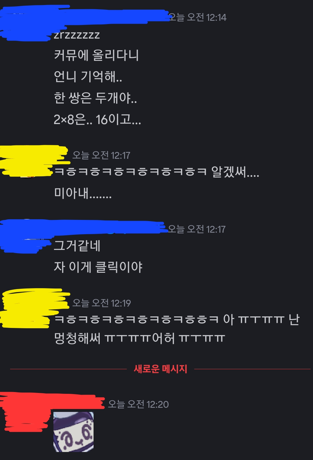 와중의 빨강쓰 출현. 우리들의 꽁트를 보고 임티 하나만 날리고 갔다.