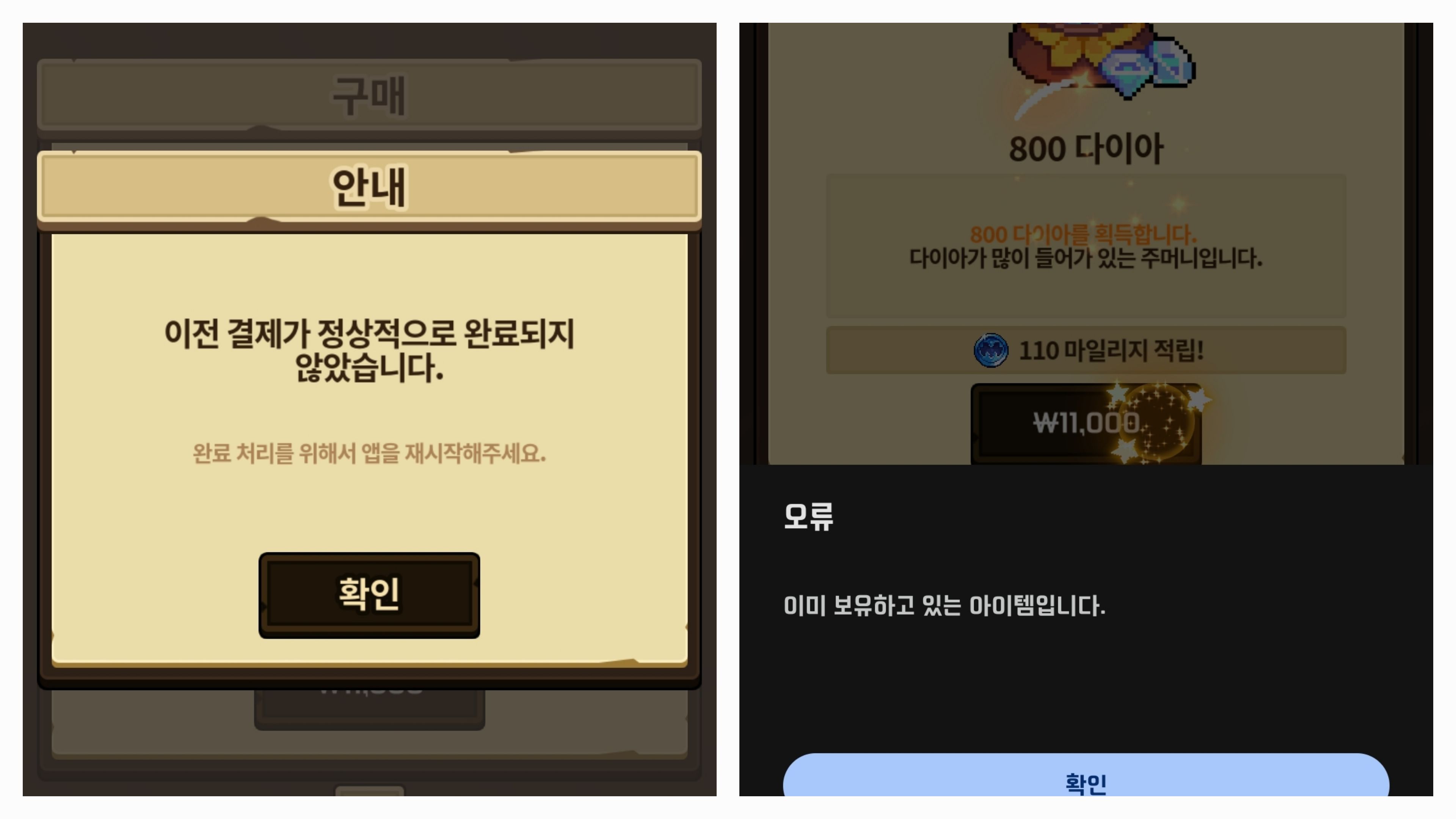 어제 구글 포인트, 네이버 포인트 합해서 결제 했는데 잠깐 앱 나갔다가 다시 들어왔는데 앱이 재시작 되더니 결제오류가 발생했습니다
