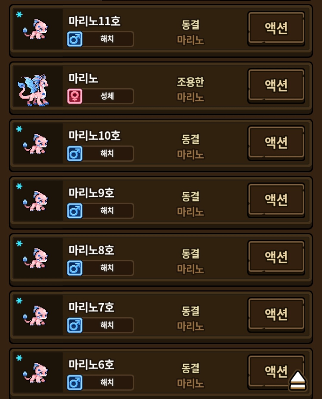 마리노 암컷 얻을려고 마리노 0호 부터 11호까지 만들었죠…