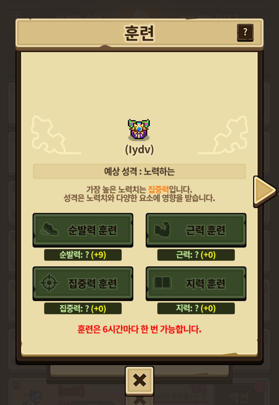 순발력 | 근력 | 집중력 | 지력