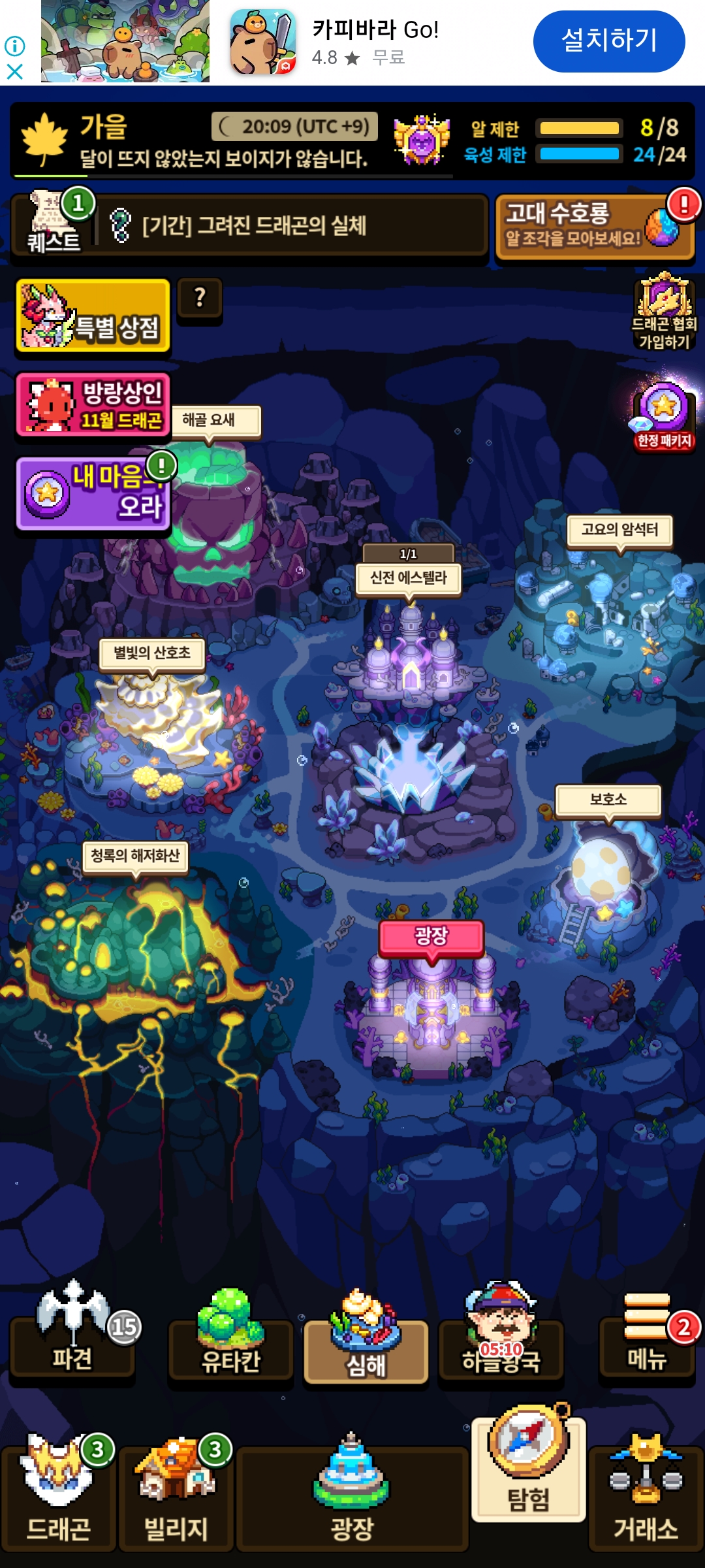 이번 업데이트로 계정 만들자마자 이젠 바토나 클레이오 주우러 심해로 못가게 하고 드래곤 성체 유타칸 10마리 모아야 갈수있게 막는다네요