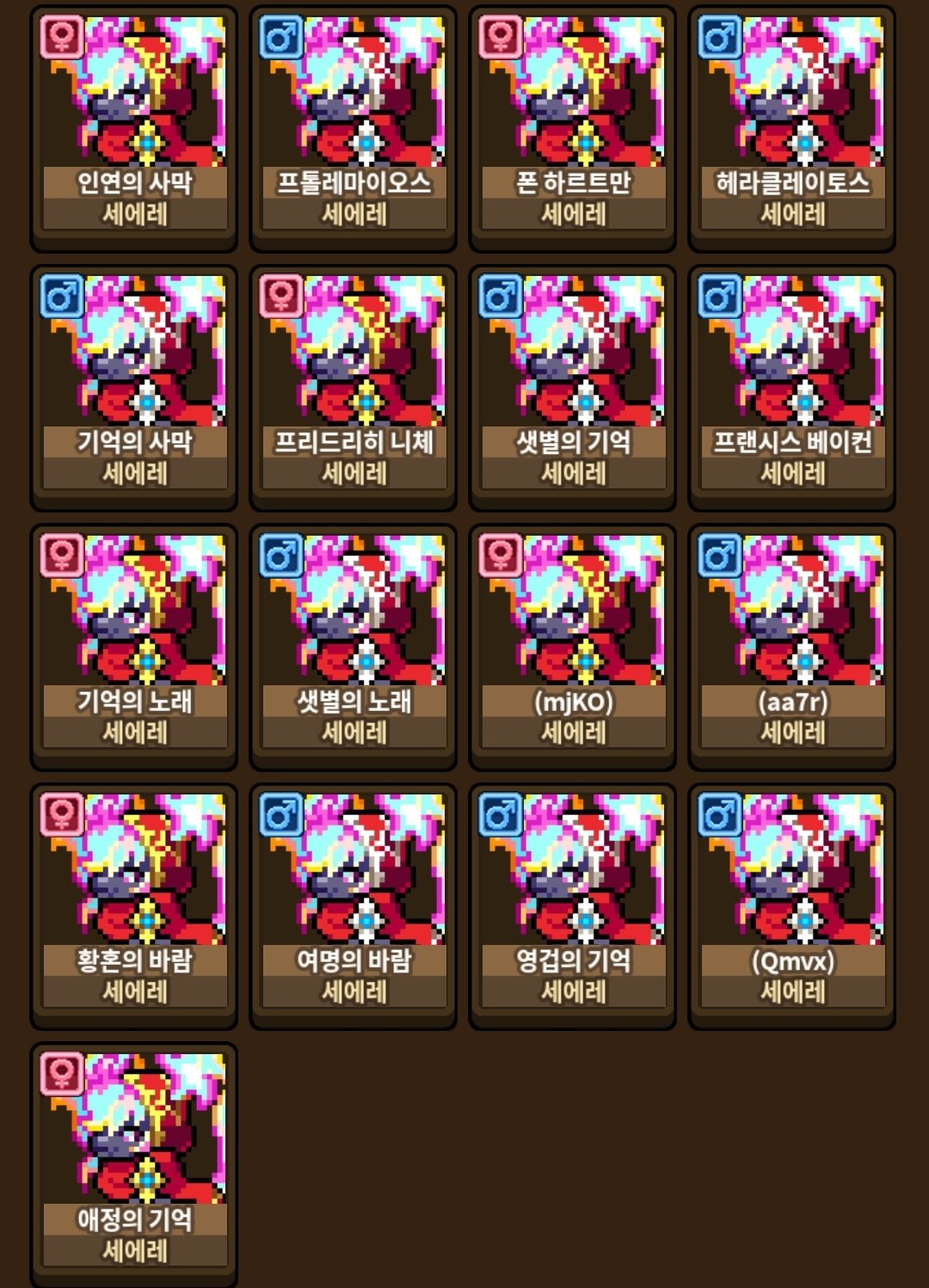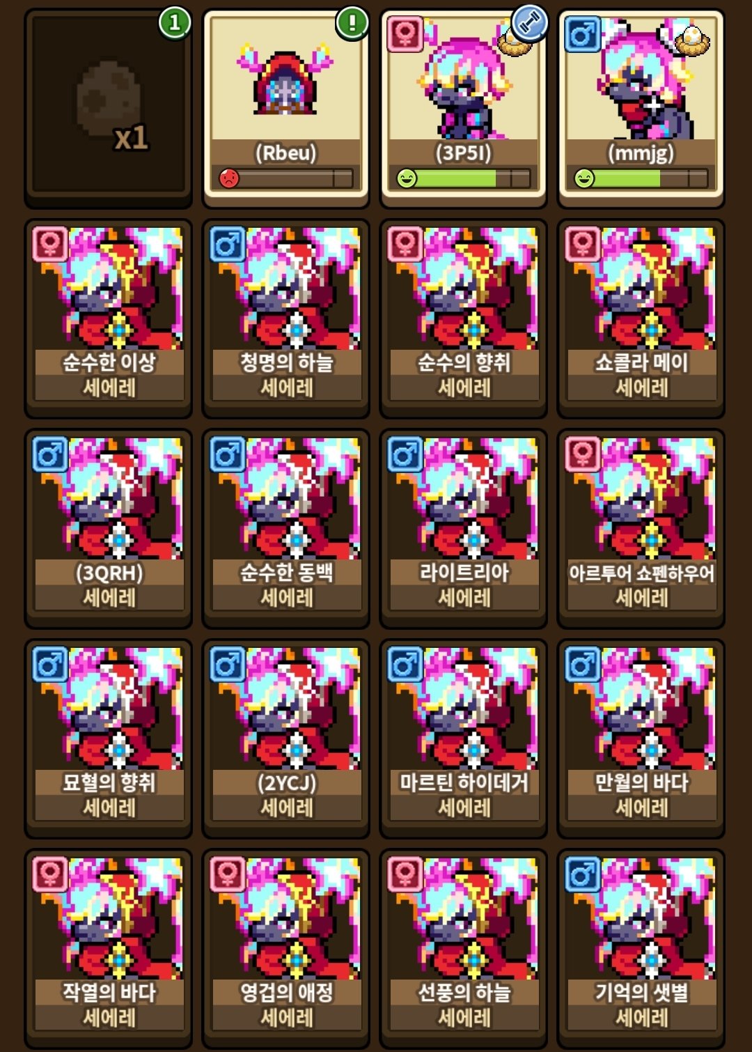세에레 일러는 조금 아쉬운데 도트가 너무 이뻐서 계속 모으던게 어느덧 36마리가 되었네요😂
