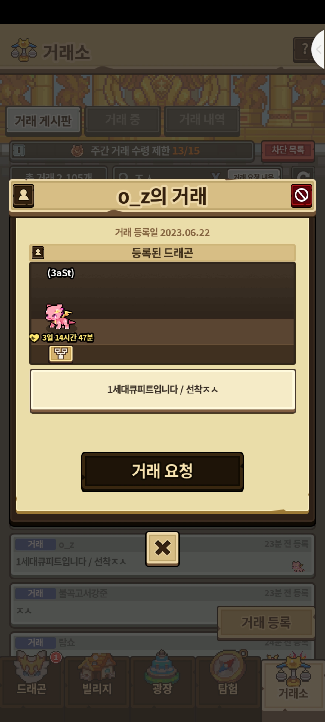 이제 거래소에서 사랑작 단골 드래곤(큐피트 레이디 즈믄 포포모 등)에 단순히 제시만 써있으면 거를듯
