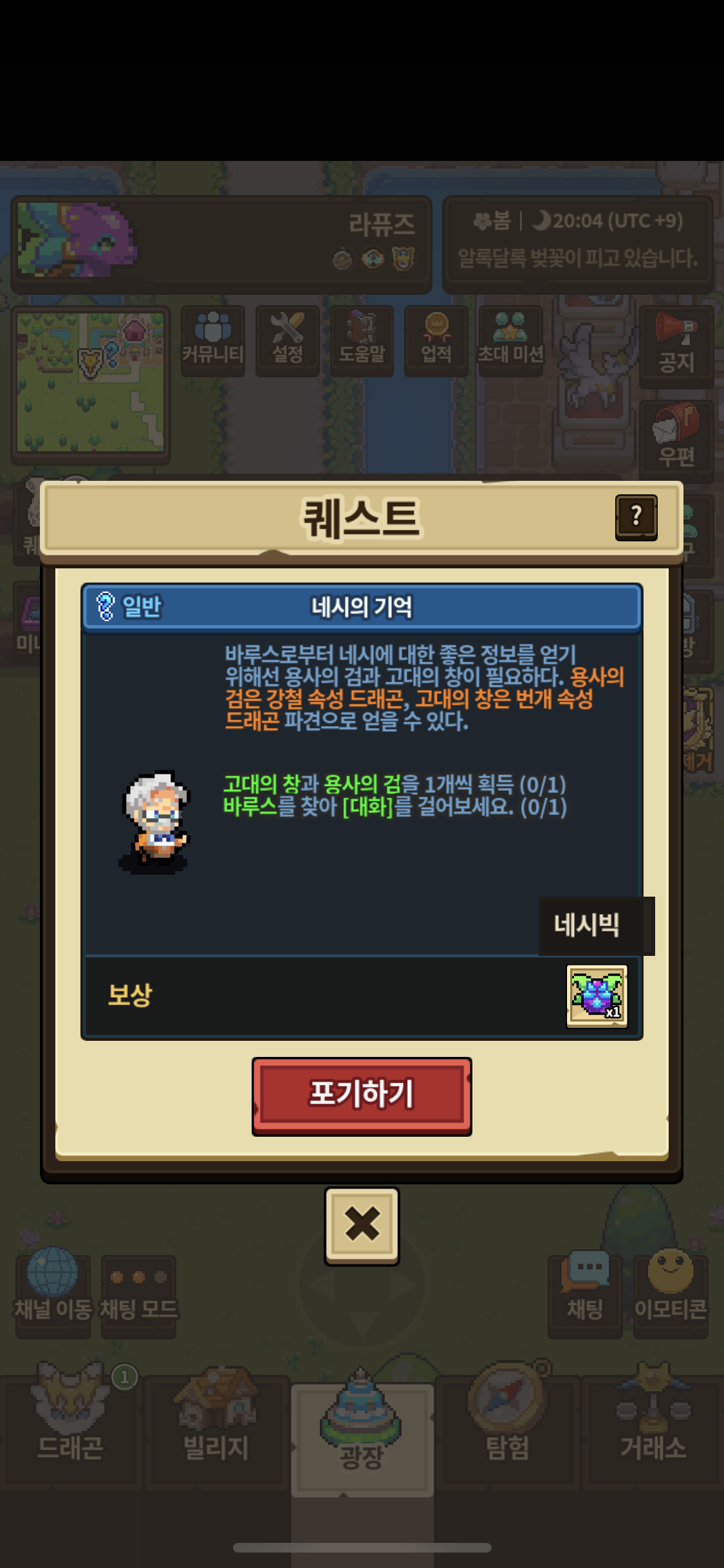 네시 성체 가지고 마을 돌아다니다가 네시의 기억 퀘스트 뜨길래 이거 뭐지 하다가 하나 둘 퀘스트 깨다가 네시빅 알 퀘 뜸