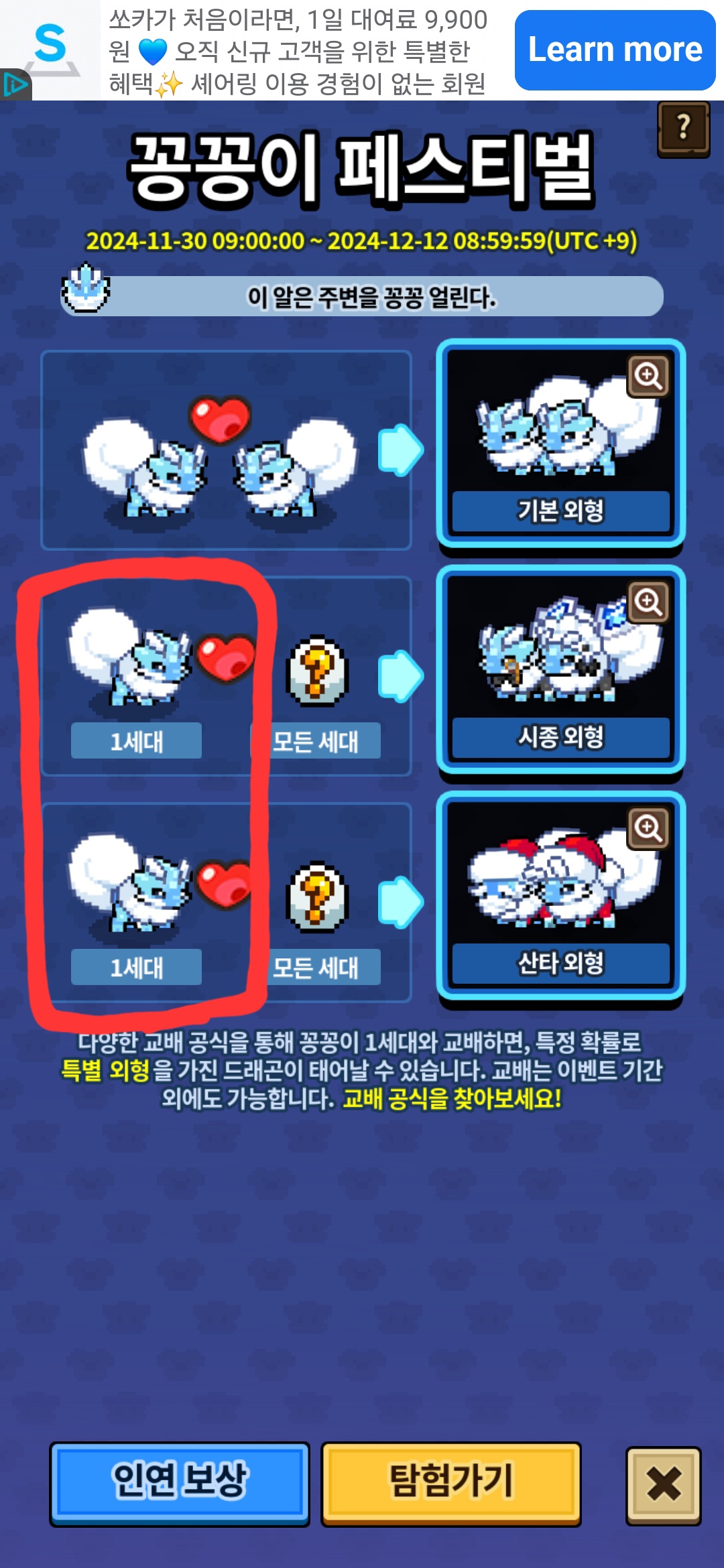 분명 꽁꽁이 1세대로 교배했을 때만 시종이나 산타 외형이 뜬다고 알았는데, 광장에서 꽁꽁이 1세대가 아니어도 뜬 경우를 봤네요.. 혹시 제가 잘못 알고 있는 걸까요..??