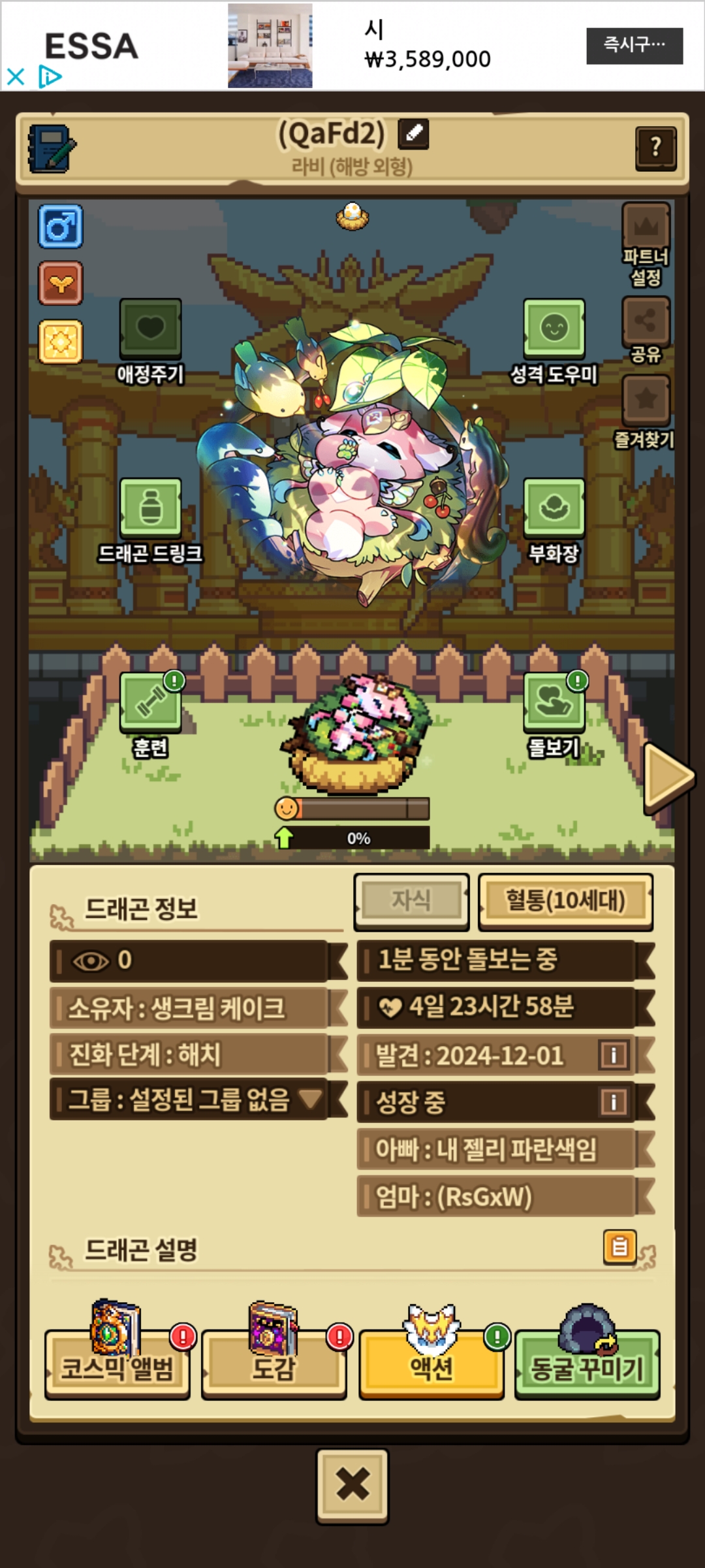 해방 라비 얻었습니다...! 드링크써서 해치 진화했고 교배로 얻었네요🥰행복합니다