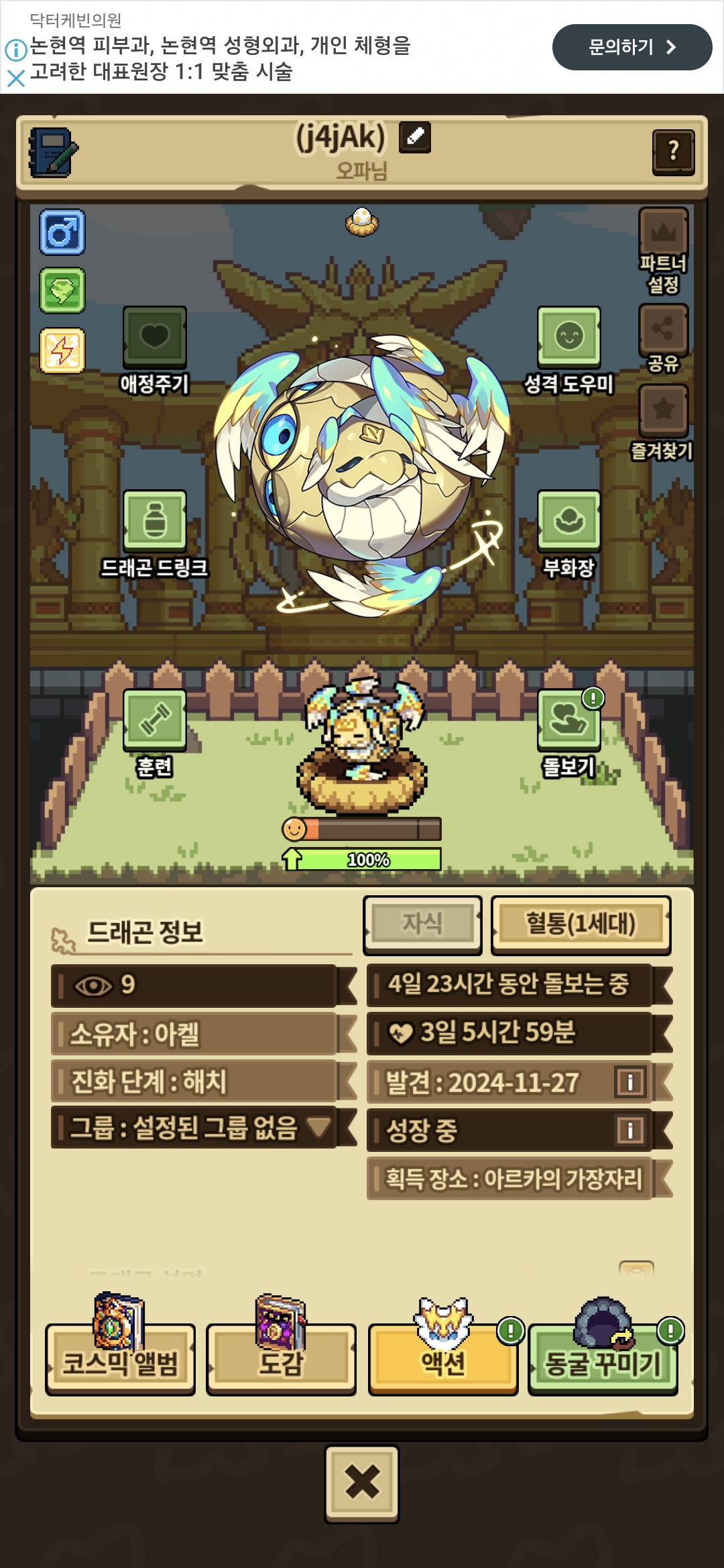 성장 바? 100%를 채우면 드래곤이 진화한다고 들었는데, 제 오파님이 진화를 안해요.. 2일 전에 보호소에서 알 상태로 주워 온 드래곤인데, 보호소에서 데려온 드래곤은 좀 다른가요?ㅠㅠ