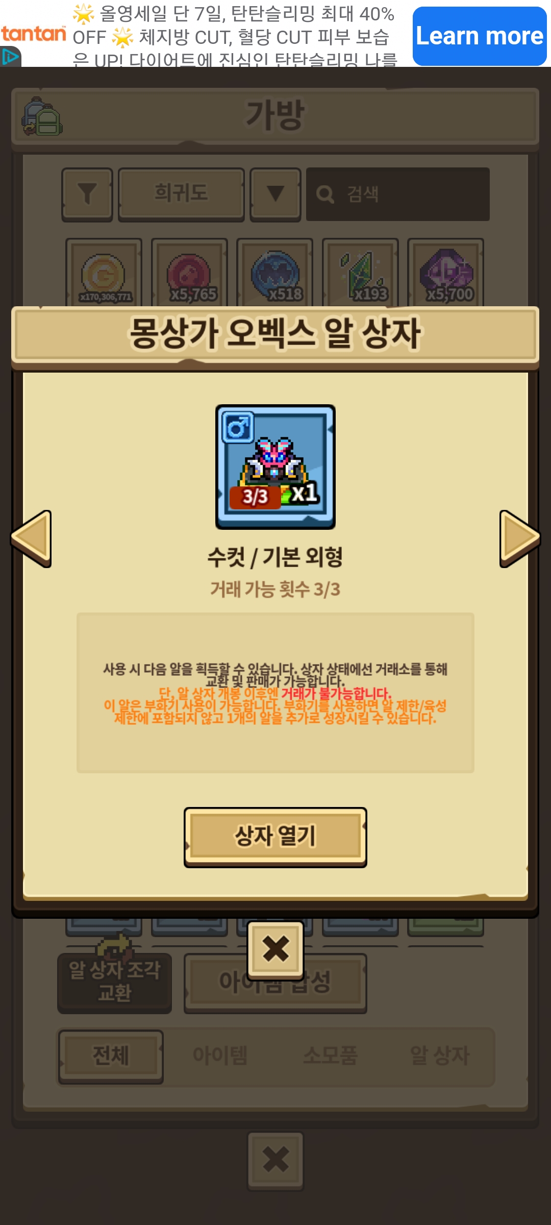 아까 오벡스 에브 뜨자마자 바로 다이아 얻음