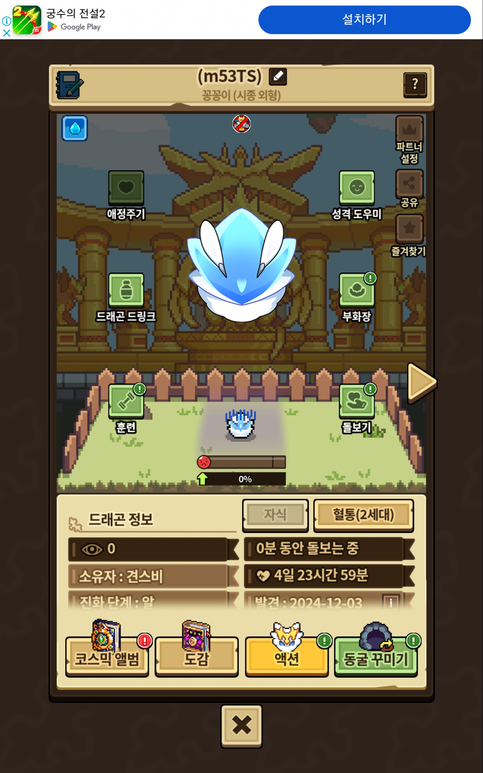 첫트만에 떴네요!(딴게임에서 가챠운 망했는데 여기서 터지네요,여담으로 성별억까로 인해 꽁꽁이에게 성별 교환권을 쓴...)