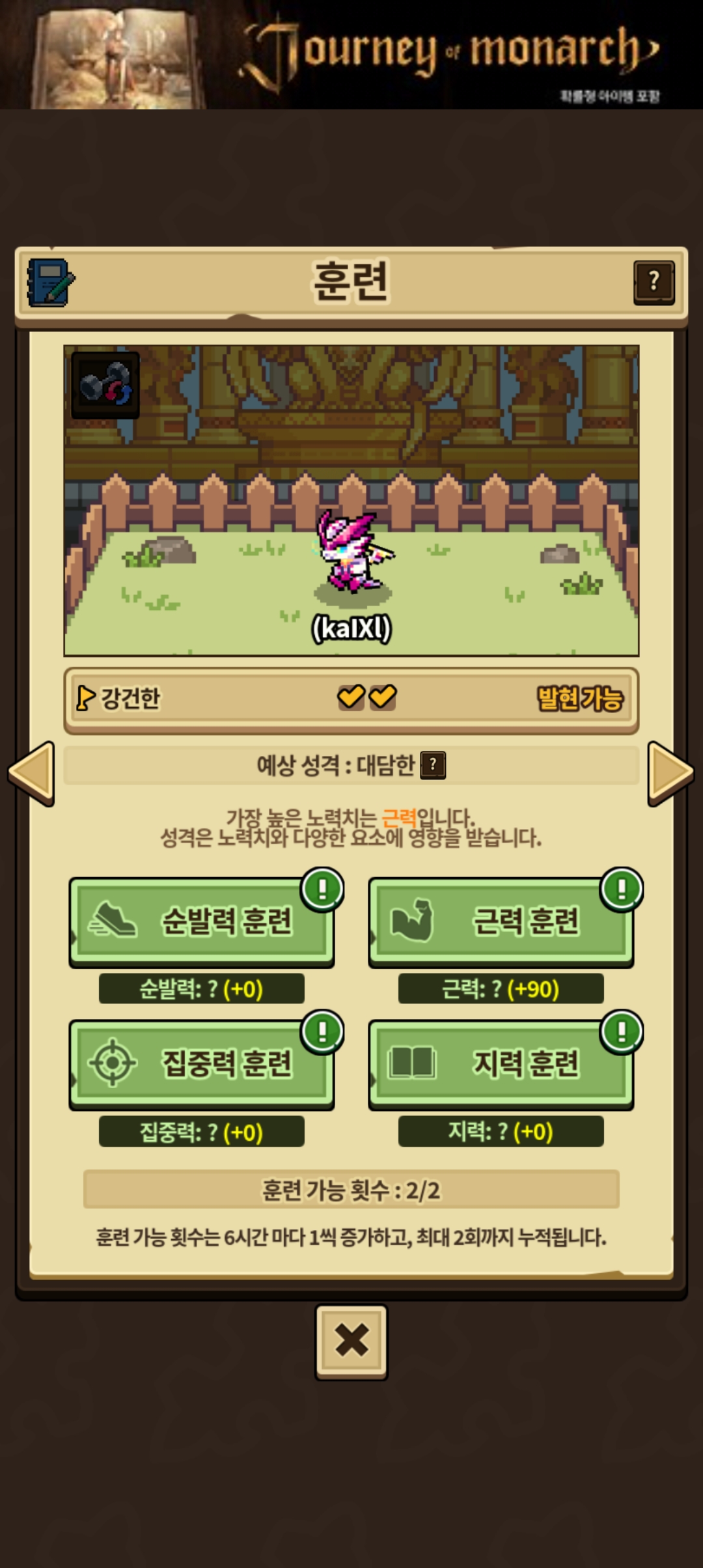 아무생각없이 품위있는 만들려고 근력 훈련만 주구장창했는데 11번 했을때 갑자기 강건한이 뜨길래 보니까 훈련 초기화하니까 딱 되더라고요.