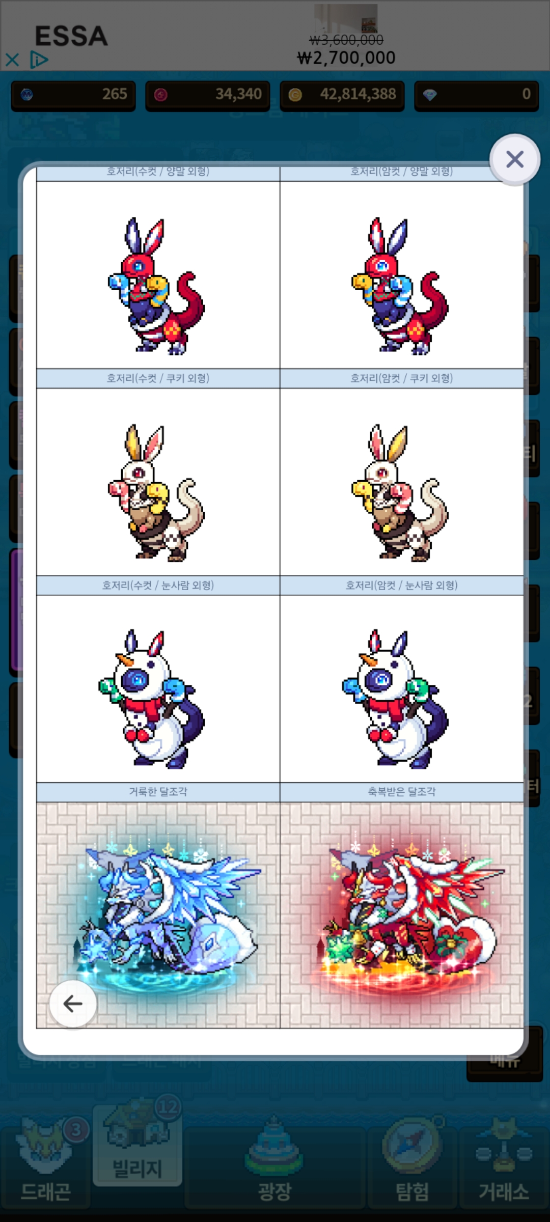 눈사람 외형이 제 취향이네요ㅎㅎ 산타의 선물상자 이벤트니까 크리마용 교배도 풀리겠네요 요번 이벤트도 기대가 되네요