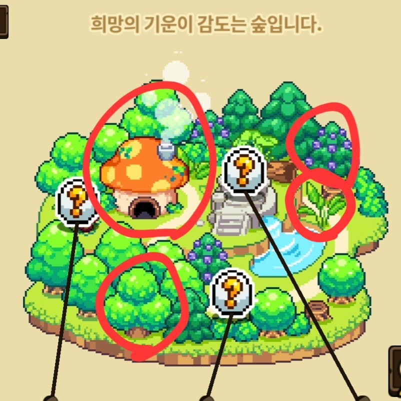 그리고 희망의 숲에 있는 미니 버섯집이랑 강아지풀도 탐나네요. 무엇보다도 뾰족한 침엽수랑 3동글이 나무… 기본나무가 더 필요합니다 저는