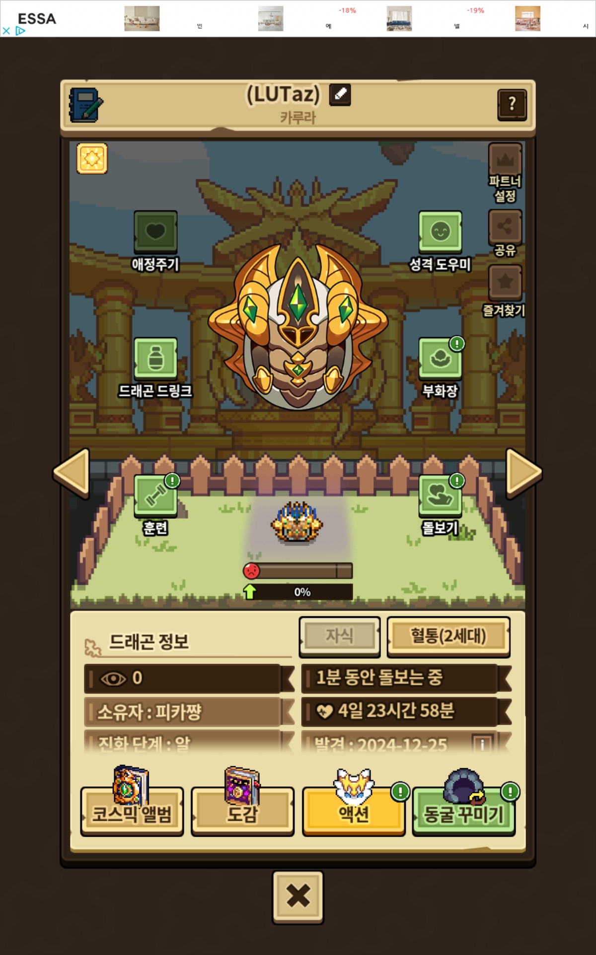 평범한 이름같지만, 화합의 크리스마스라 타이게타&카루라로 교배했는데 카루라의 LU(루)와 타이게타의 Ta(타)가 나왔네요. 그리고 뒤에 붙은 z는 자식의 z? 같아 보이네요. 음… 카루라와 타이게타의 자식..?