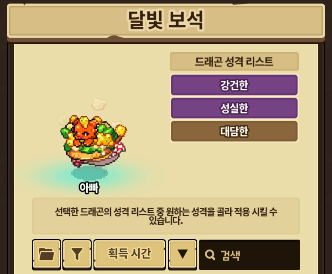 성격작 망한 에그마용인데 11개월 전 뉴비때 막무가내로 훈련시킨 친구라 그 당시에는 강건한 성격이 없었는데 조건만 된다면 이후에 추가된 성격도 같이 나오네요