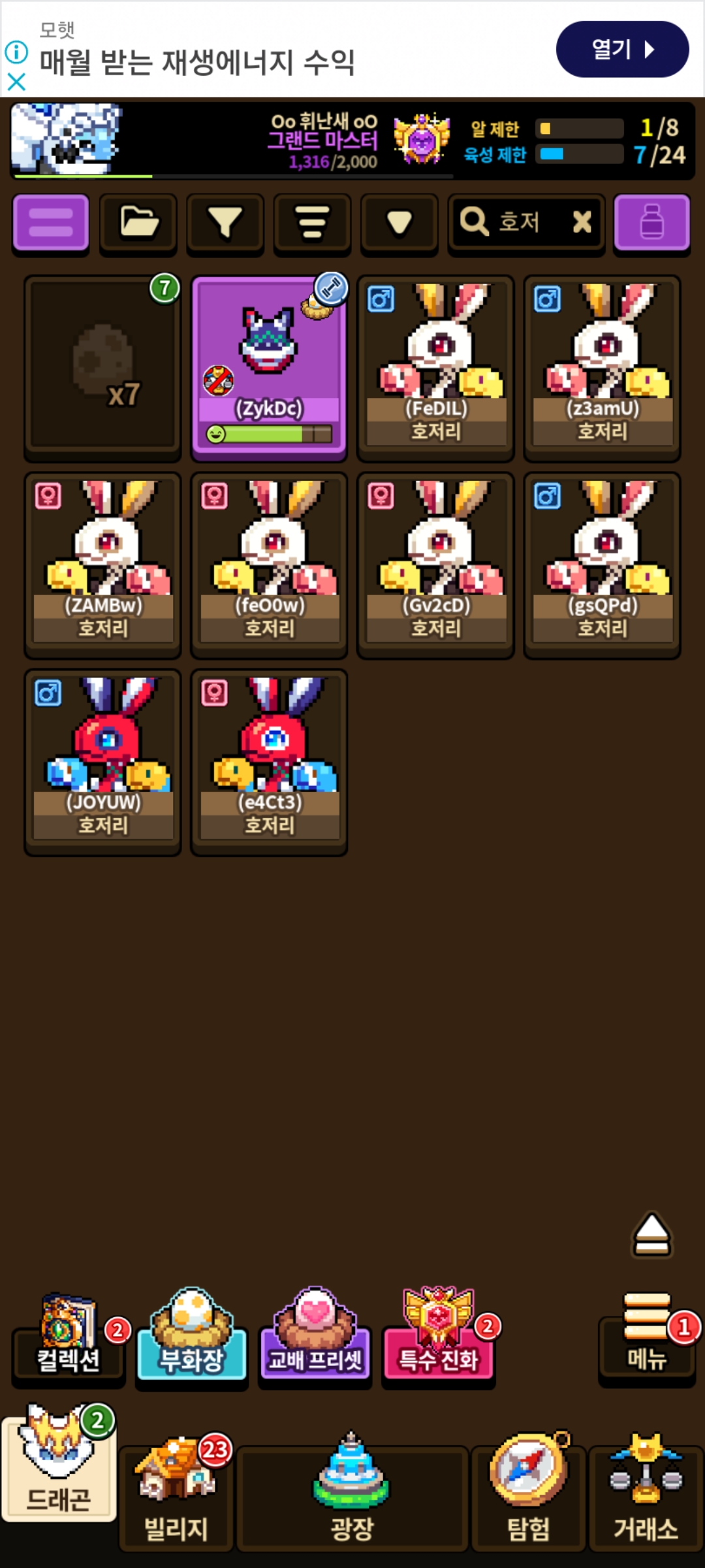 지금 알인것도 쿠키 외형.. 어째 일반 외형이 처음 두번 이후 나오질 않습니다.. 쿠키외형 그만 보고 싶습니다.. 지금 여깄는 아이들 모두 1세대이며 얘들이 제 모든 호저리입니다. 근데 쓸데없이 성비는 좋습니다..