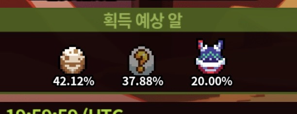 의문의 알 확률이 저게 과연 맞는지 아니면 호저리는 그렇다 쳐도 교배종은 연속으로 뜨는 횟수에 제한을 걸어놓은게 아닌지 계속 의심하게 되네요..