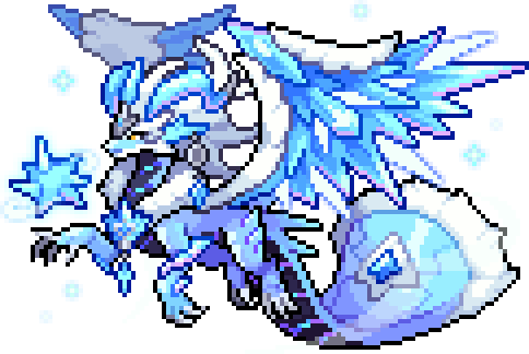 얼음으로 된 작은 몸과 흰 꼬리를 가진 드래곤으로