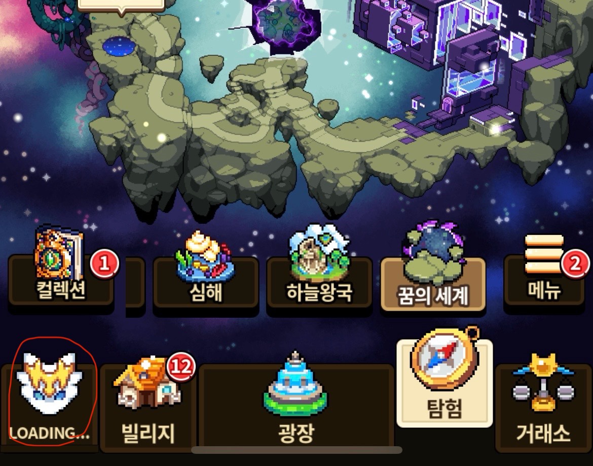 저번 업뎃부터 접속하면 저런 로딩상태가 됐다가 몇 초 지나야 돌보는 용들이 다 나오는데