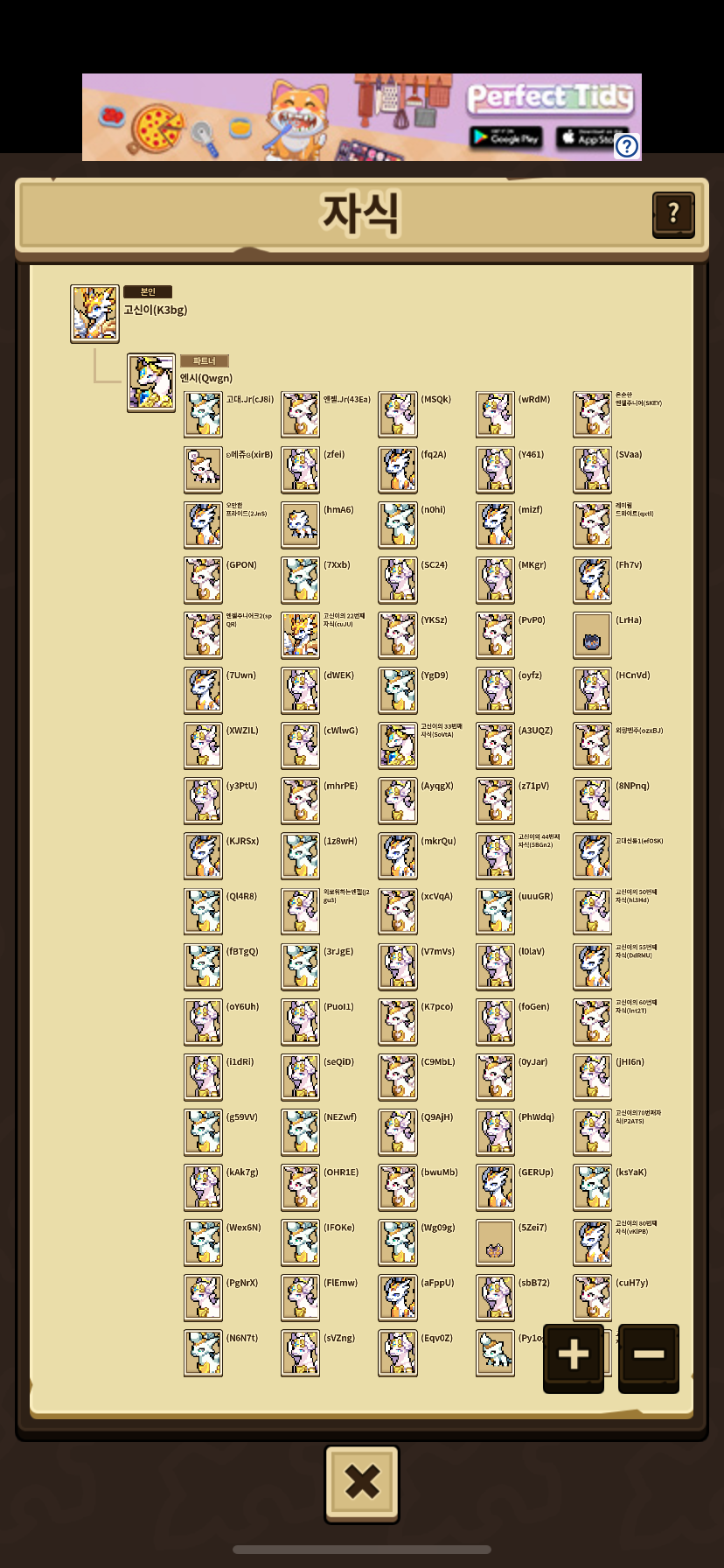 어느새 90번째 자식을 만들고 한 화면을 가득채우게 되었네여!! 1주년때 50번째를 찍고 100번째를 목표로 지금까지 생각날때 마다 자식을 생산하니 벌써 90번째네요.. 이대로 100번째까지!!!
