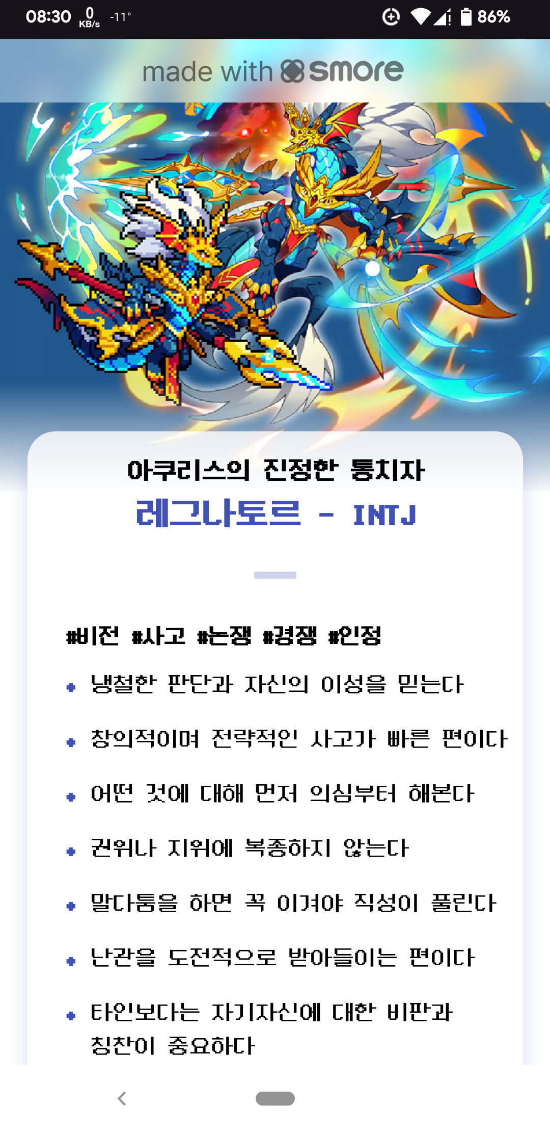 실제 MBTI랑 똑같아서 신기하네요 ㄷㄷ