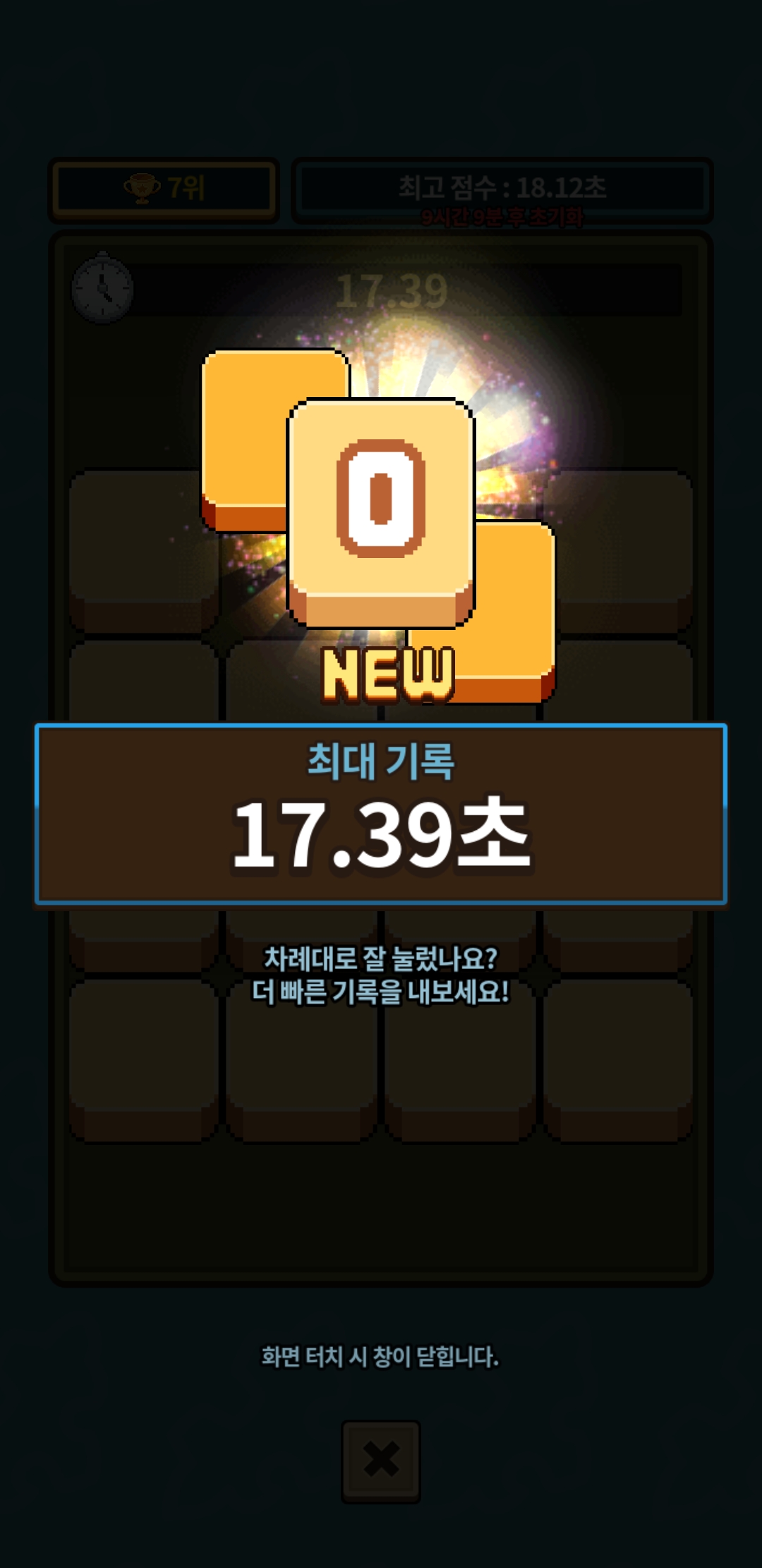 18초 안에 끝내기 했는데 왜 업적보상 안 주는지 아시는 분??