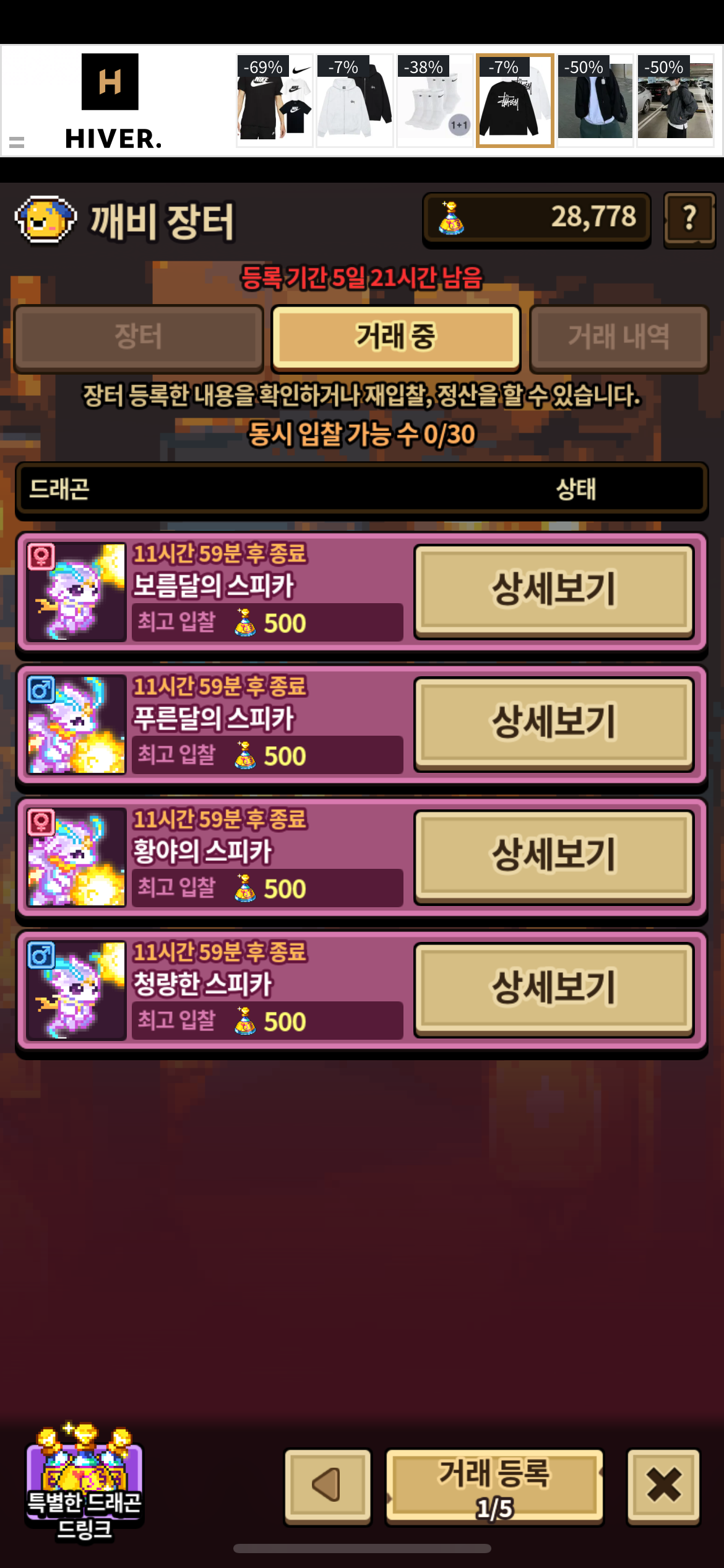 모두 500에 최저가 시작했습니다!