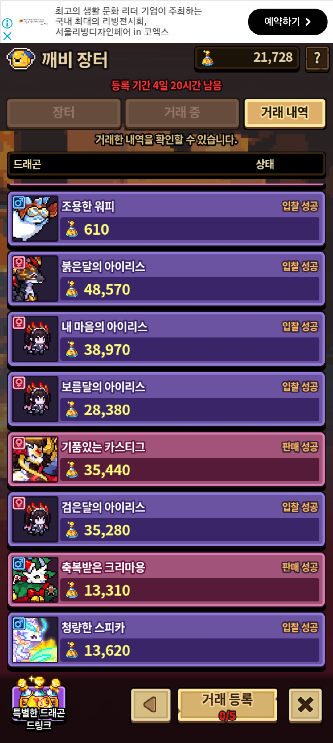 아이리스 평균 40000 드링크 쯤으로 4마리 겟