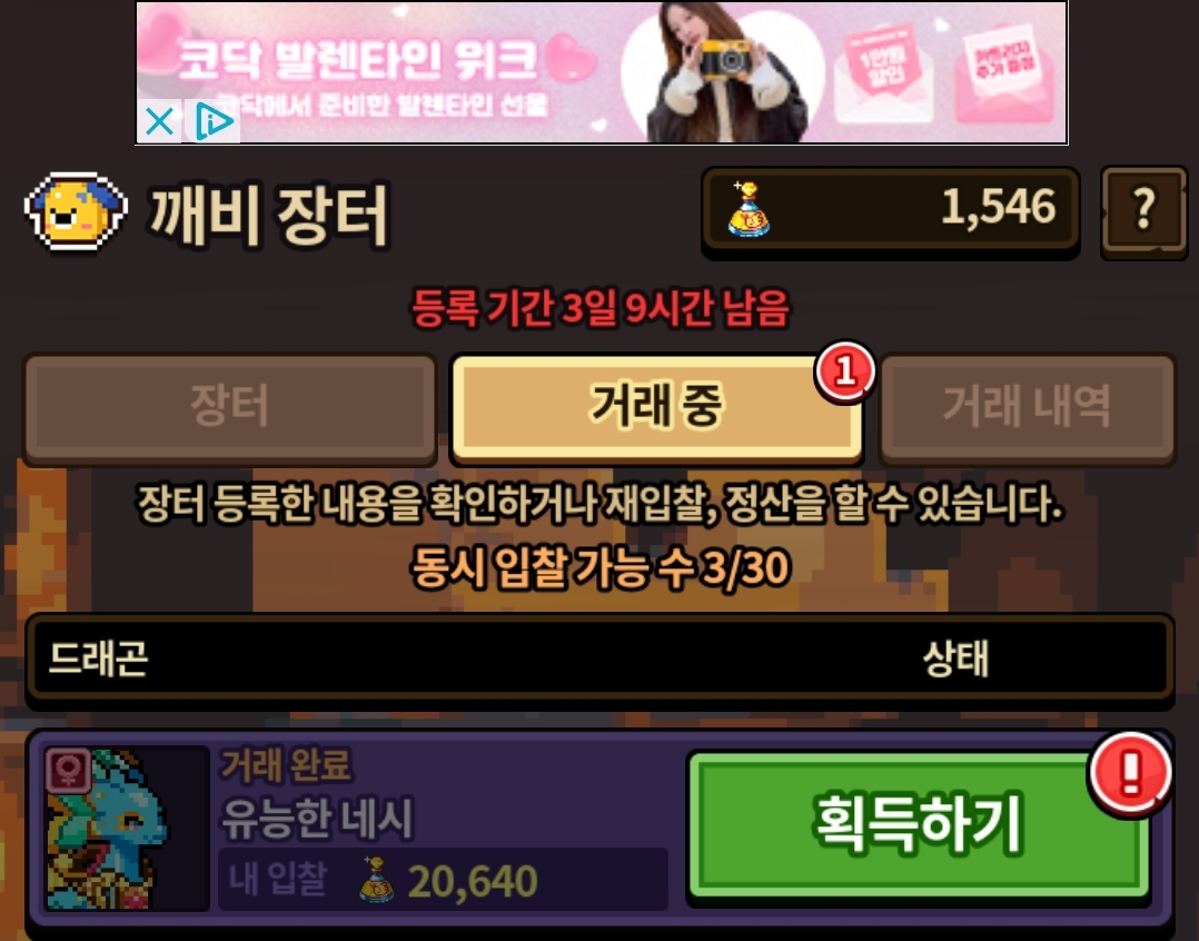 처음에 놓친 네시는 1마넌 정도에 누가 사간 거 같던데.