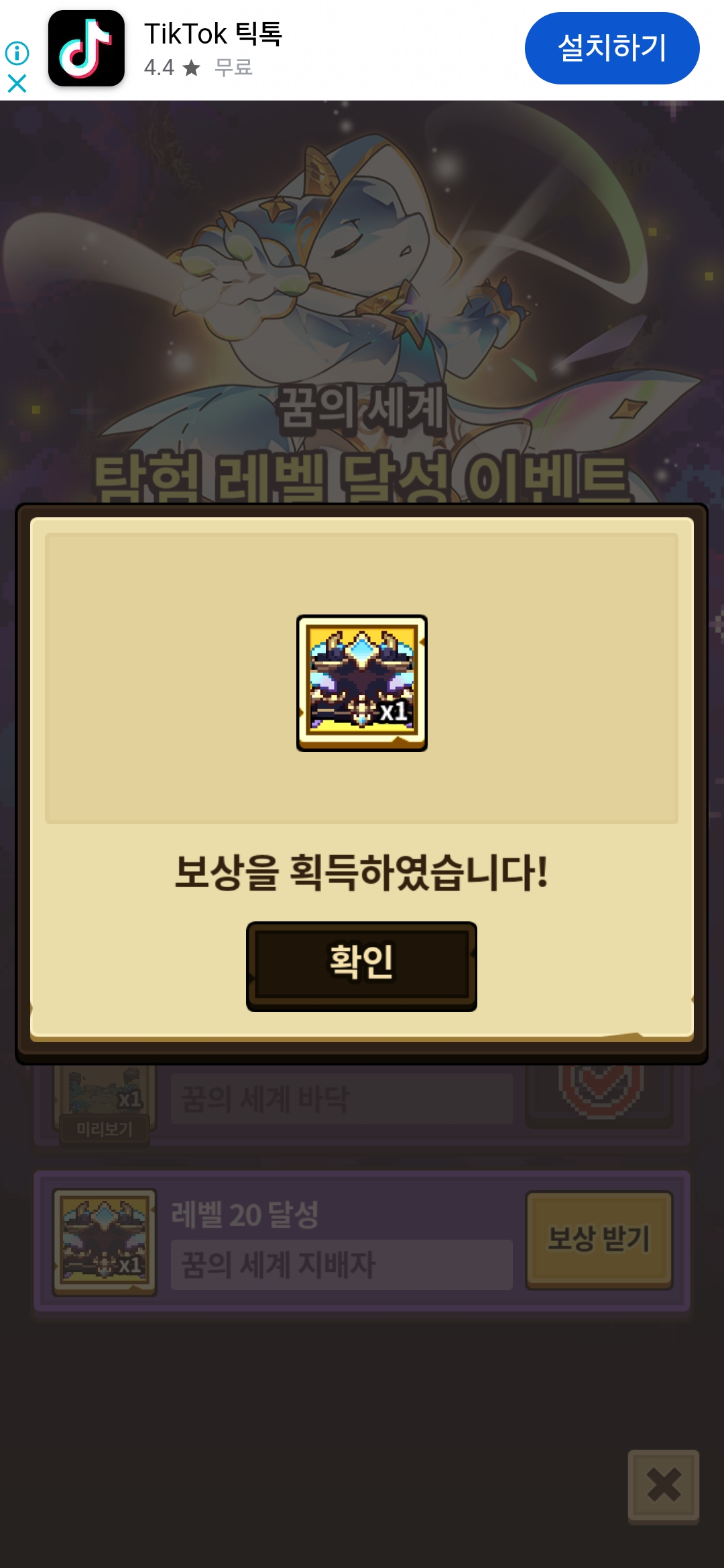 드디어 꿈세계 20레벨 성공。°(°.◜ᯅ◝°)°。돈은 안 썼는데 진짜 몇 만 드링크를 쓴 거 같아요.. 너무 힘들었지만 뿌듯합니다