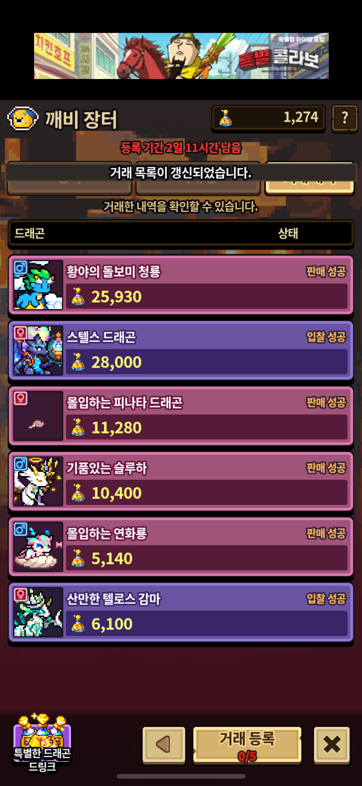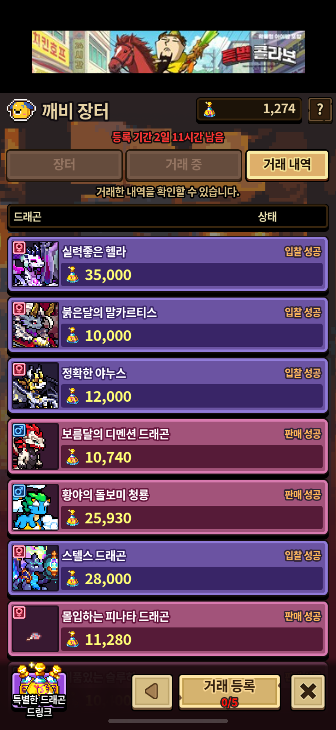 작년 이벤트 때 해치나 해츨링에 성격 부여해둔 게 괜찮게 팔려서 이번 깨장에서는 드링크를 꽤 모을 수 있었습니다.