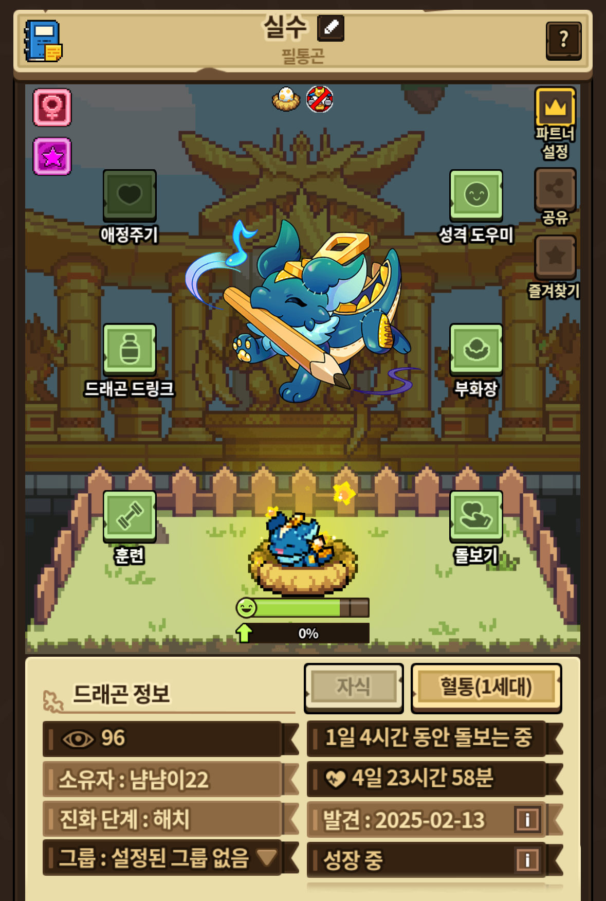 웃는 모션 너무 뽀쨕해요… 해츨링 되면 연필 날라가던데 기대되네요…!!
