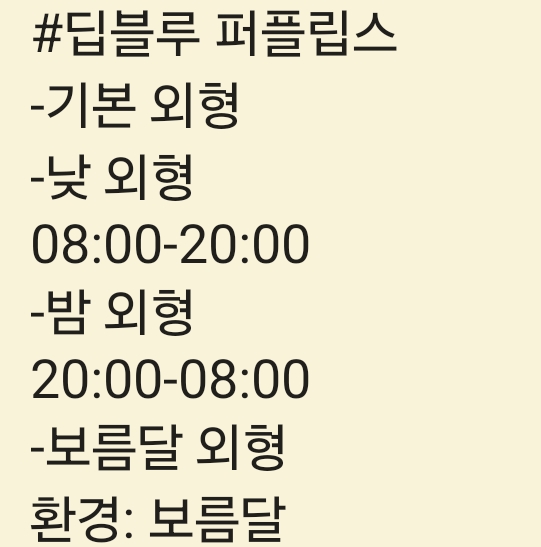 A. 딥블루 퍼플립스는 낮/밤 외형, 기본 외형, 보름달 외형이 있어서 기본 외형, 낮/밤 외형이 나올 수도 있어요🥲